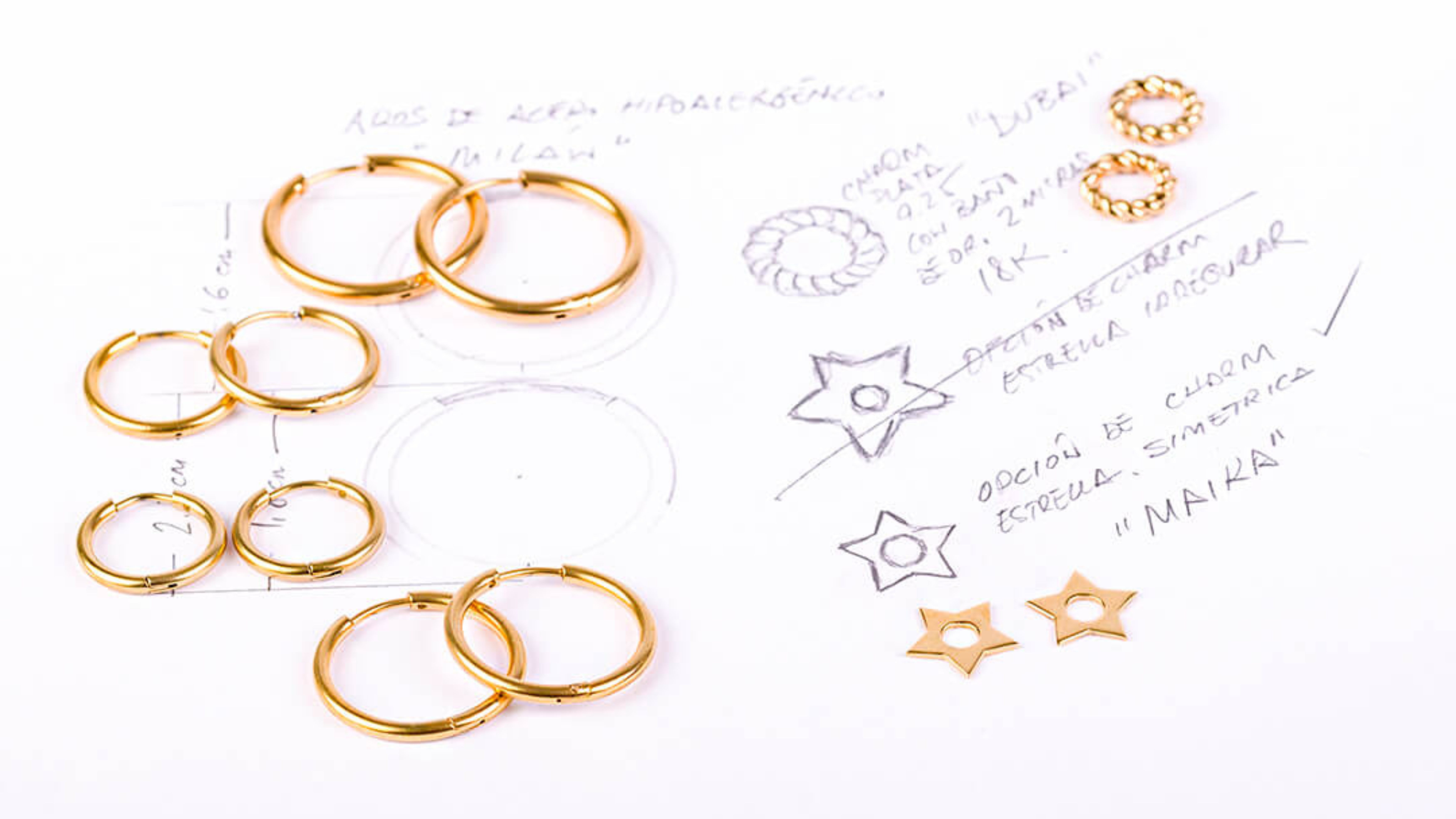 Por eso, hemos sido muy selectos a la hora de sacar adelante nuestros diseños, y hemos elegido para empezar aquellos productos que sabemos son un best seller: aros de Nuditos, aritos Peri, aros Bardot, anillo Atria, Aritos Little, mini chapas caladas de iniciales…