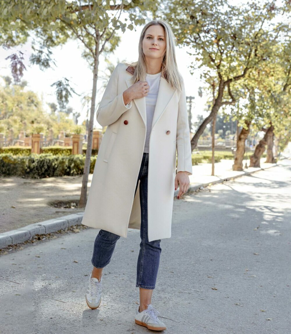 El Abrigo Letizia de paño que te traemos en Darwin Collection es una pieza imprescindible para esta temporada. Diseñado en un elegante color marfil con un cuello solapa de terciopelo beige y detalles en un tono más oscuro, este abrigo es pura sofisticación. Su diseño versátil lo convierte en una prenda ideal tanto para un look casual del día a día como para eventos más formales, ¡incluso es perfecto como abrigo de invitada para bodas de invierno!