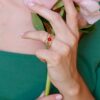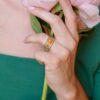 Si eres fan del color de esta piedra, puedes combinar el Anillo Catalina con la Cadena Lisboa, que lleva de charm una piedra grande redonda de cornalina. La cadena también puede usarse sin el charm, a modo de cadena dorada, lo que la hace muy versátil para cualquier look.