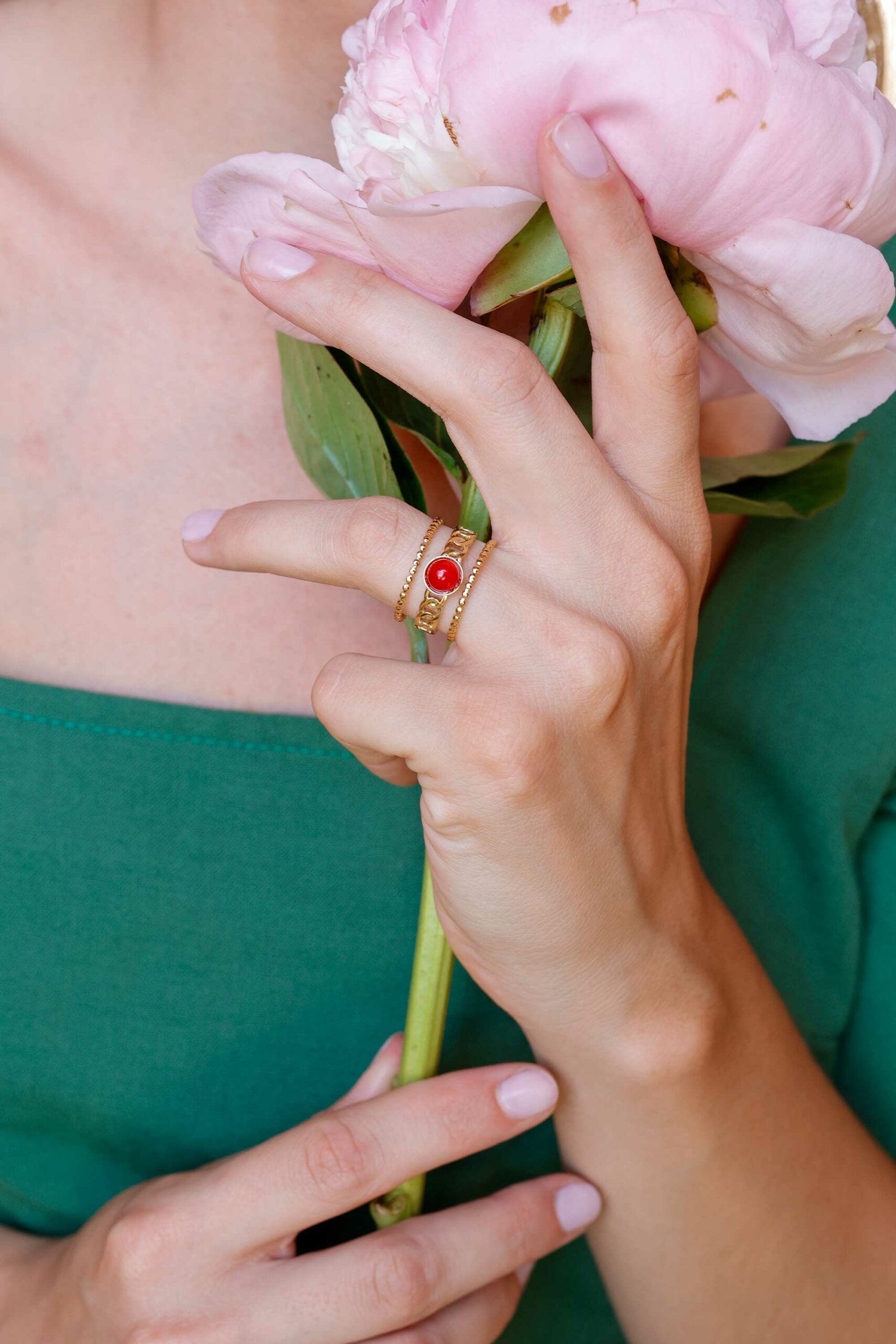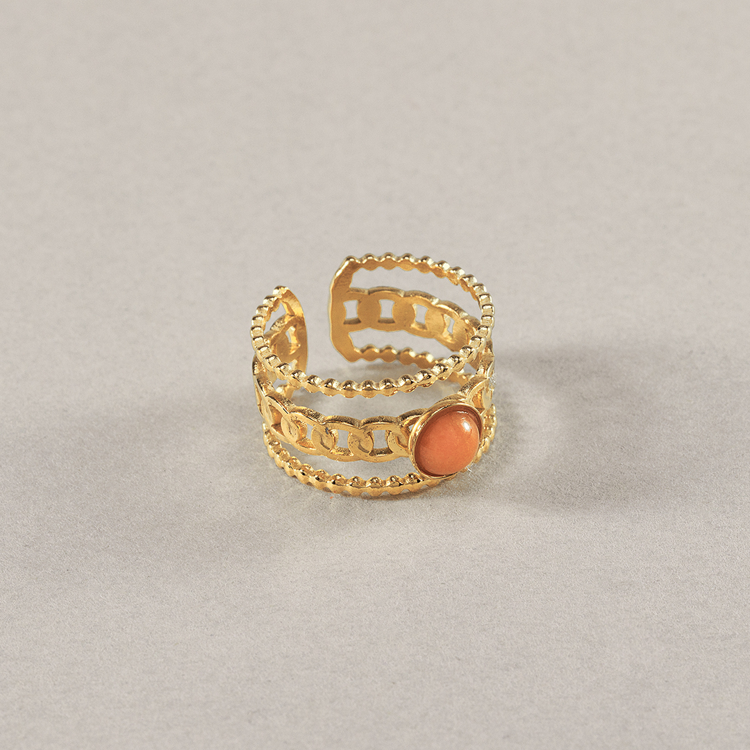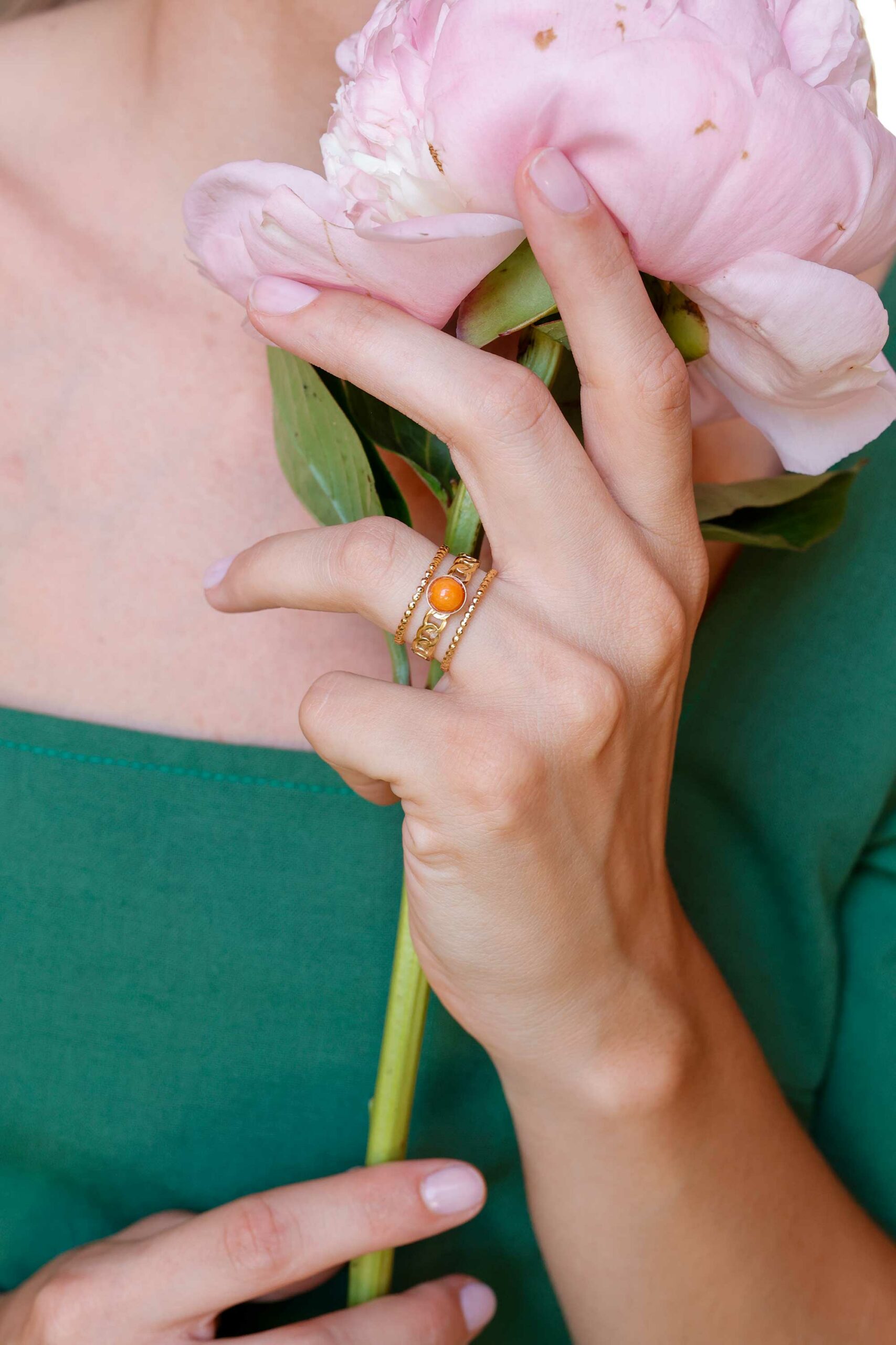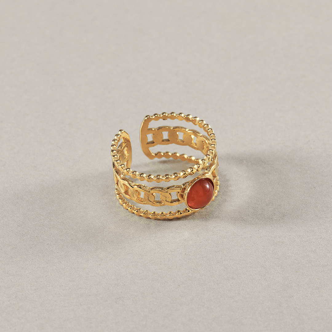 El Anillo Catalina es un diseño atrevido que dará fuerza a cualquier look que elijas, gracias a la piedra natural de cornalina que lleva engarzada.