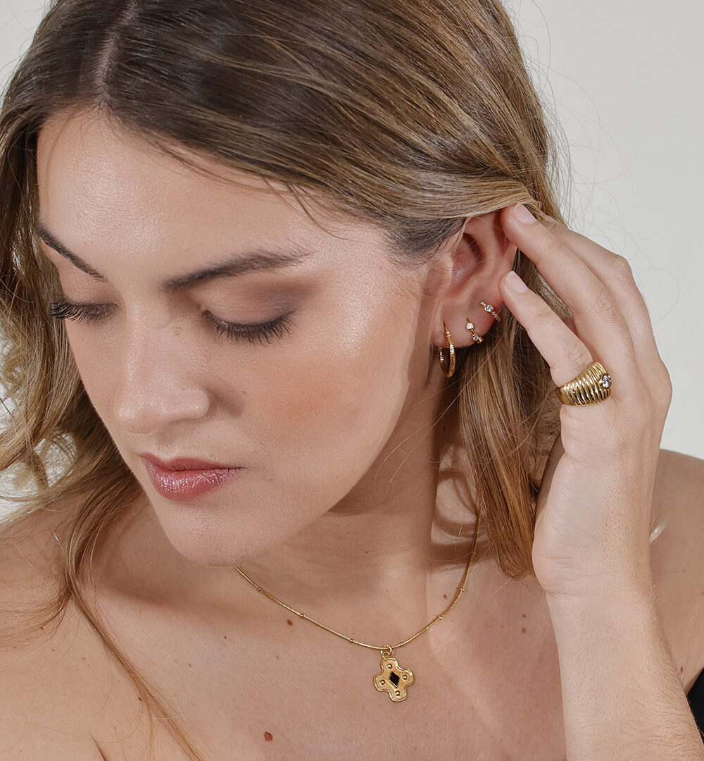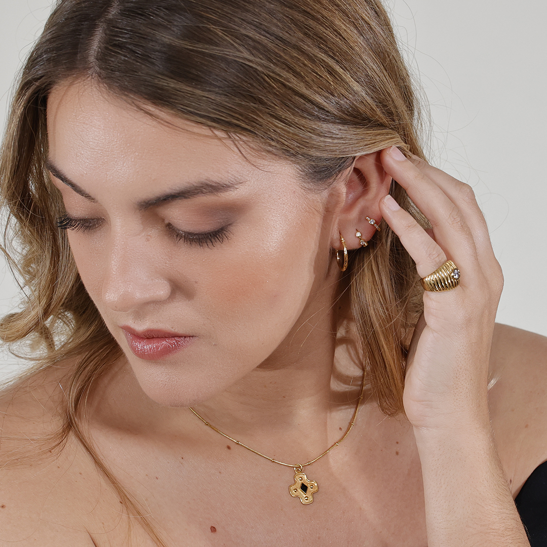 ¿Necesitas ideas para combinarlo? ¡Aquí te dejamos algunas! Puedes lucirlo junto a nuestros Pendientes Aro Riviere, pensamos que hacen un tandem perfecto. Y si quieres darle un toque extra de glamour, combínalo con la Cadena Punto de Luz.