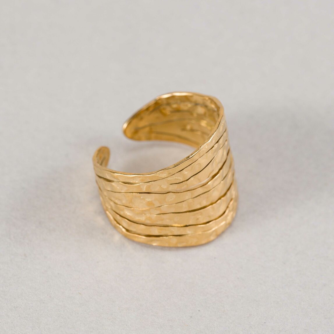 El Anillo Florida es una joya XL que destaca por su diseño ancho, calado y amartillado, perfecto para transformar cualquier look con sofisticación y personalidad. Ajustable y cómodo, está fabricado en acero inoxidable 316L dorado, hipoalergénico y waterproof, ideal para uso diario y pieles sensibles. Versátil, puede llevarse solo o combinado con anillos finos para un estilo único. Una pieza atemporal y llena de carácter que no puede faltar en tu colección. ¡Hazlo tuyo y deslumbra con cada outfit!