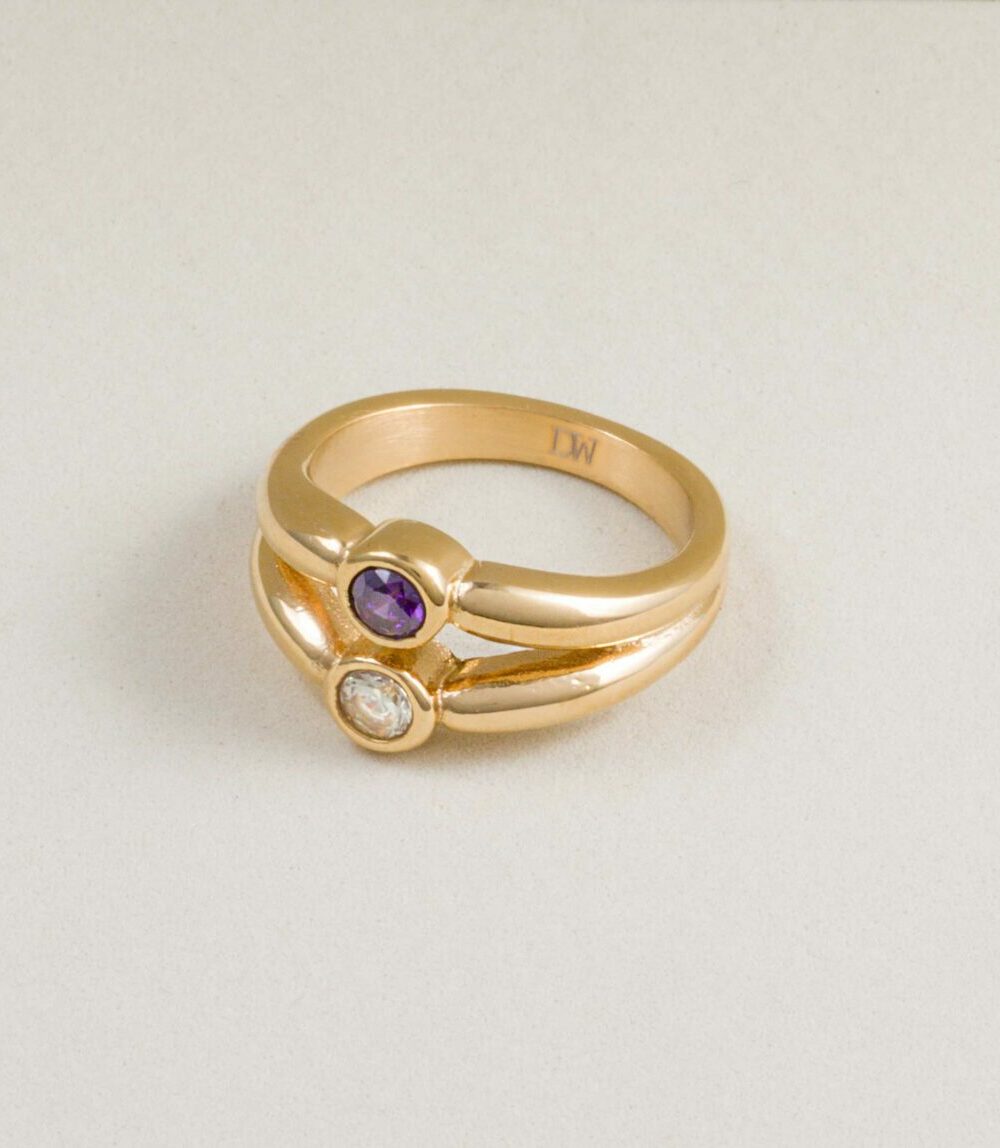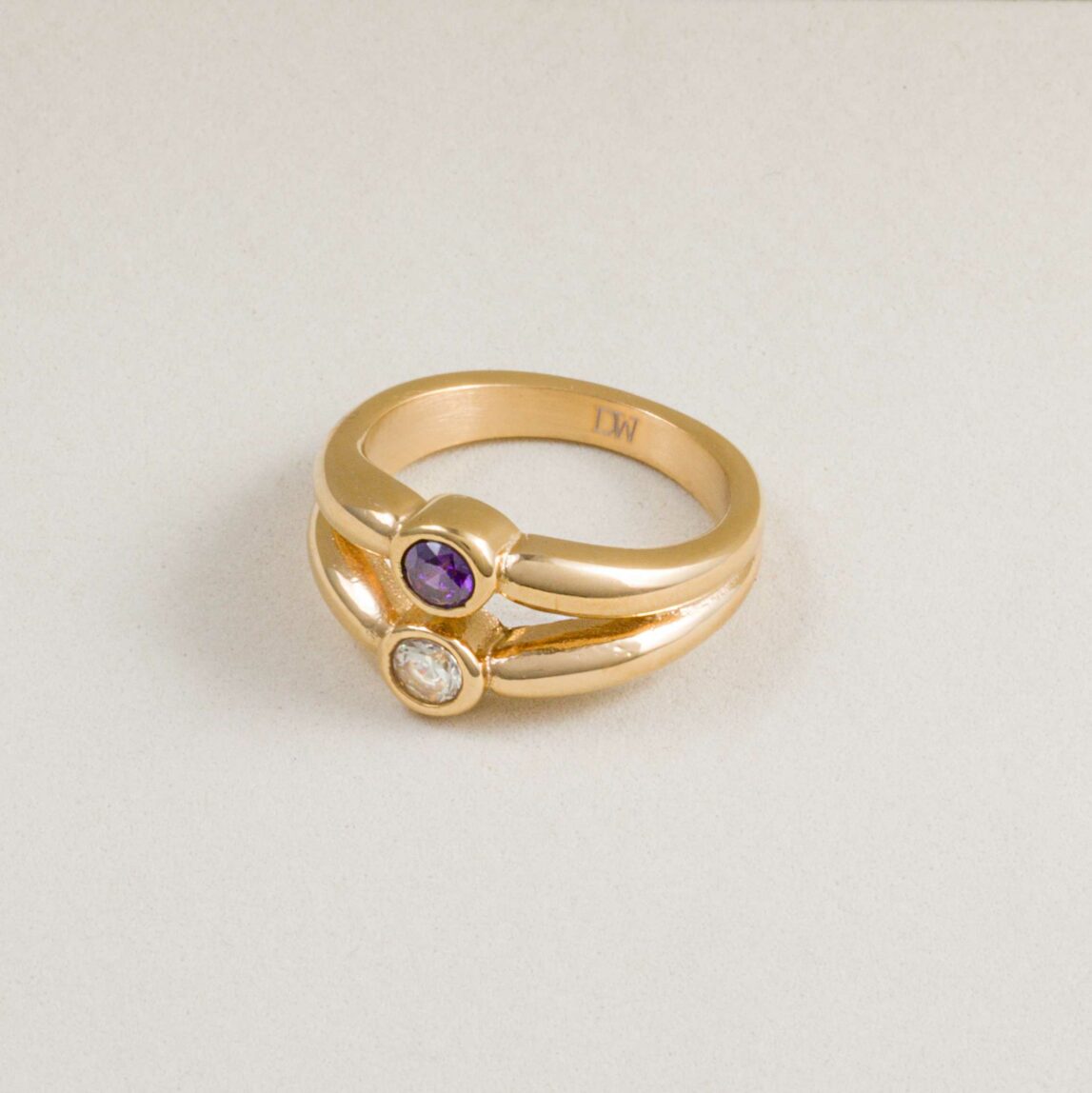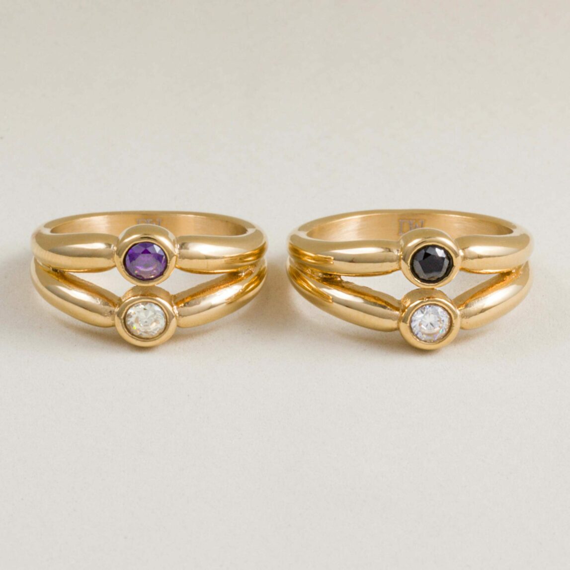 Nuestro anillo Lolita está disponible en dos modelos de colores diferentes ( amatista y nude o negro y blanco ).