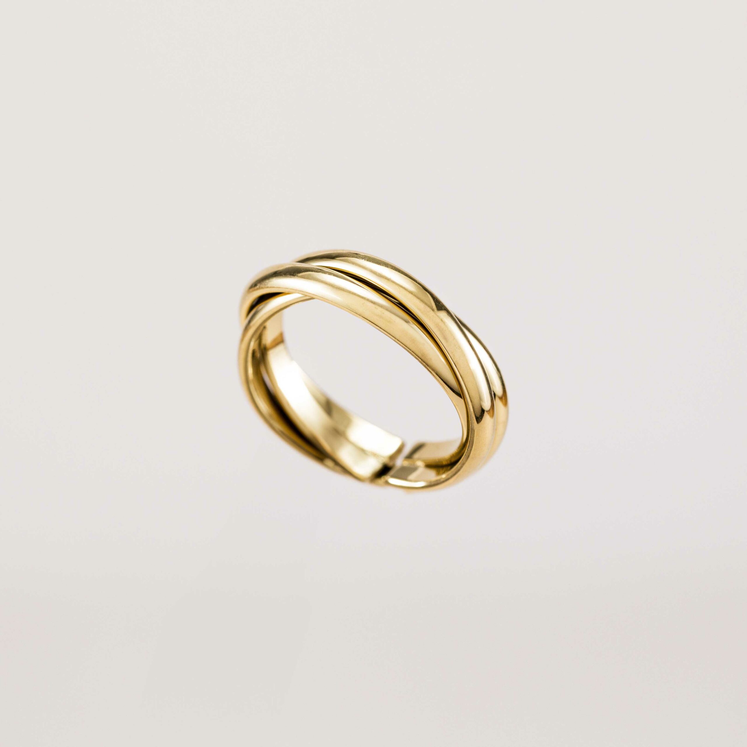 El Anillo Tres Alianzas es tu nuevo mejor amigo. Este diseño único combina tres alianzas entrelazadas, creando un look voluminoso, moderno y súper elegante.