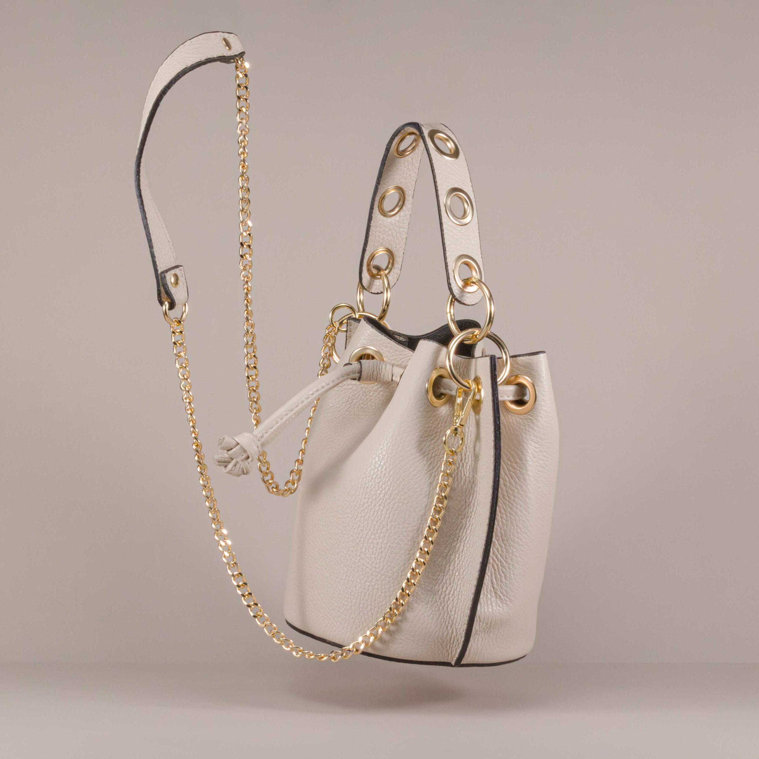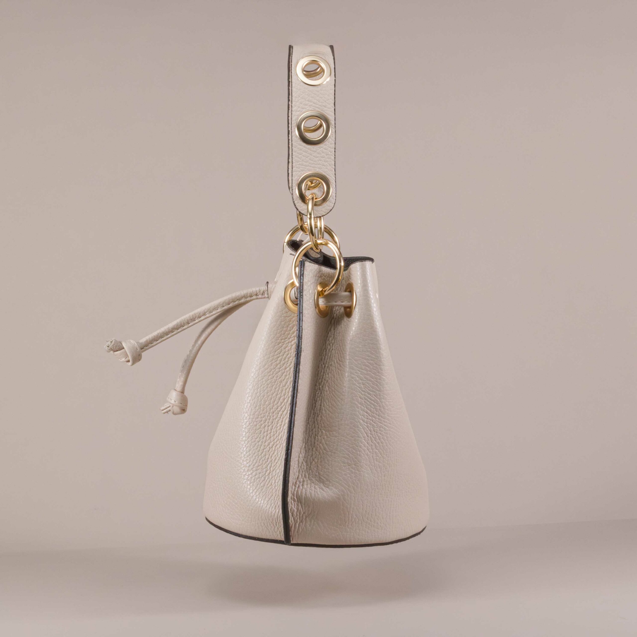 El Bolso bombonera piel Maya beige está fabricado en piel  natural 100% italiana.