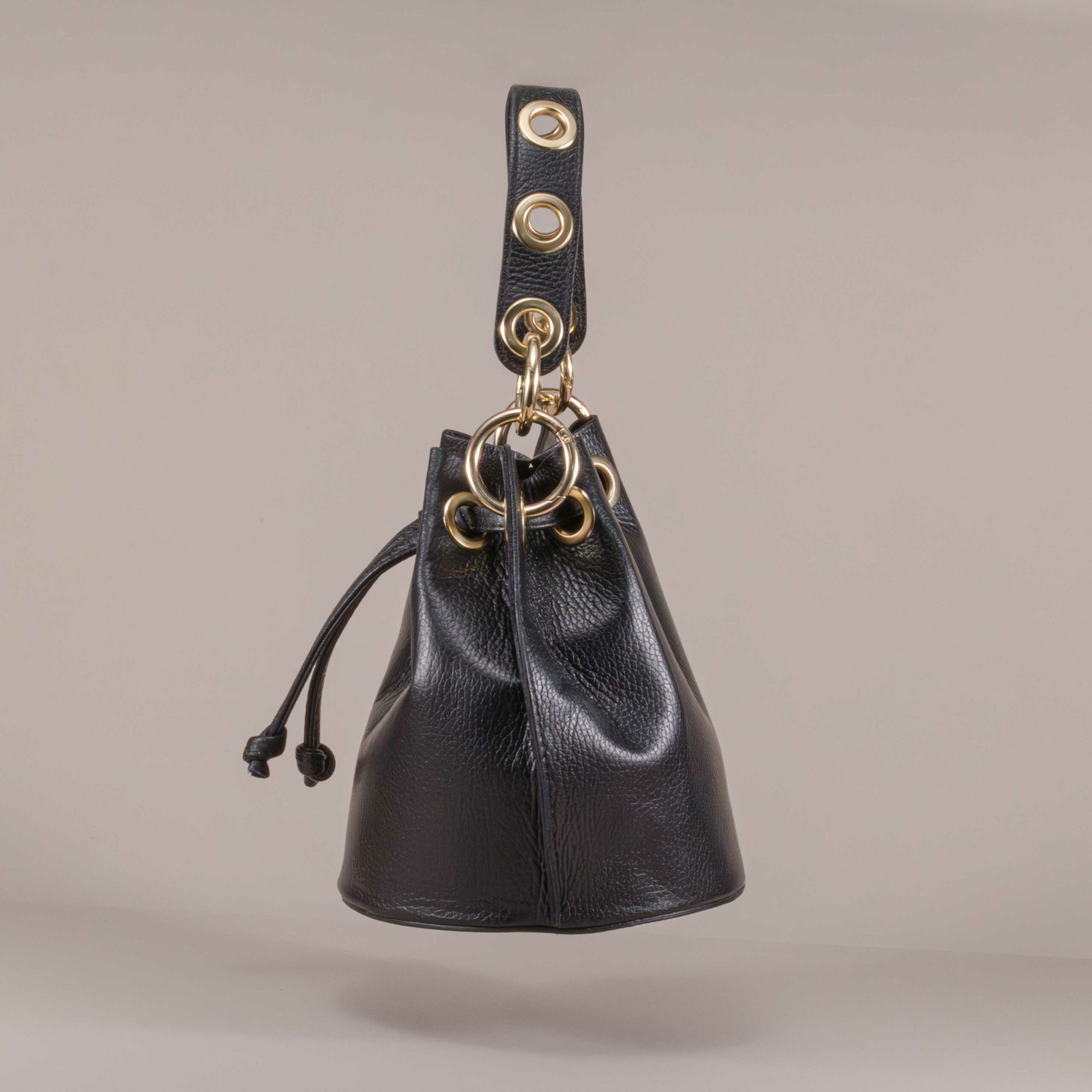 El Bolso bombonera piel Maya negro está fabricado en piel  natural 100% italiana.