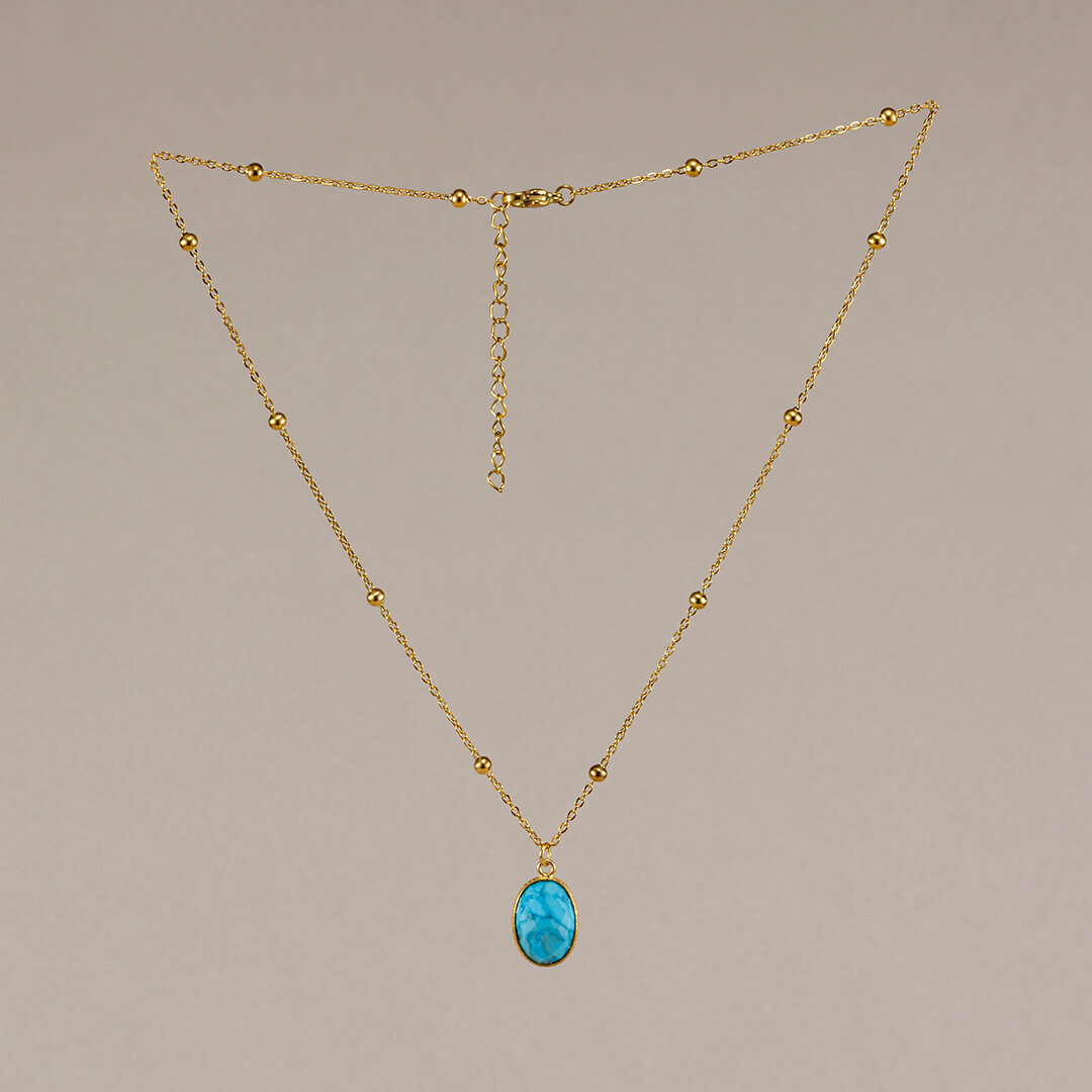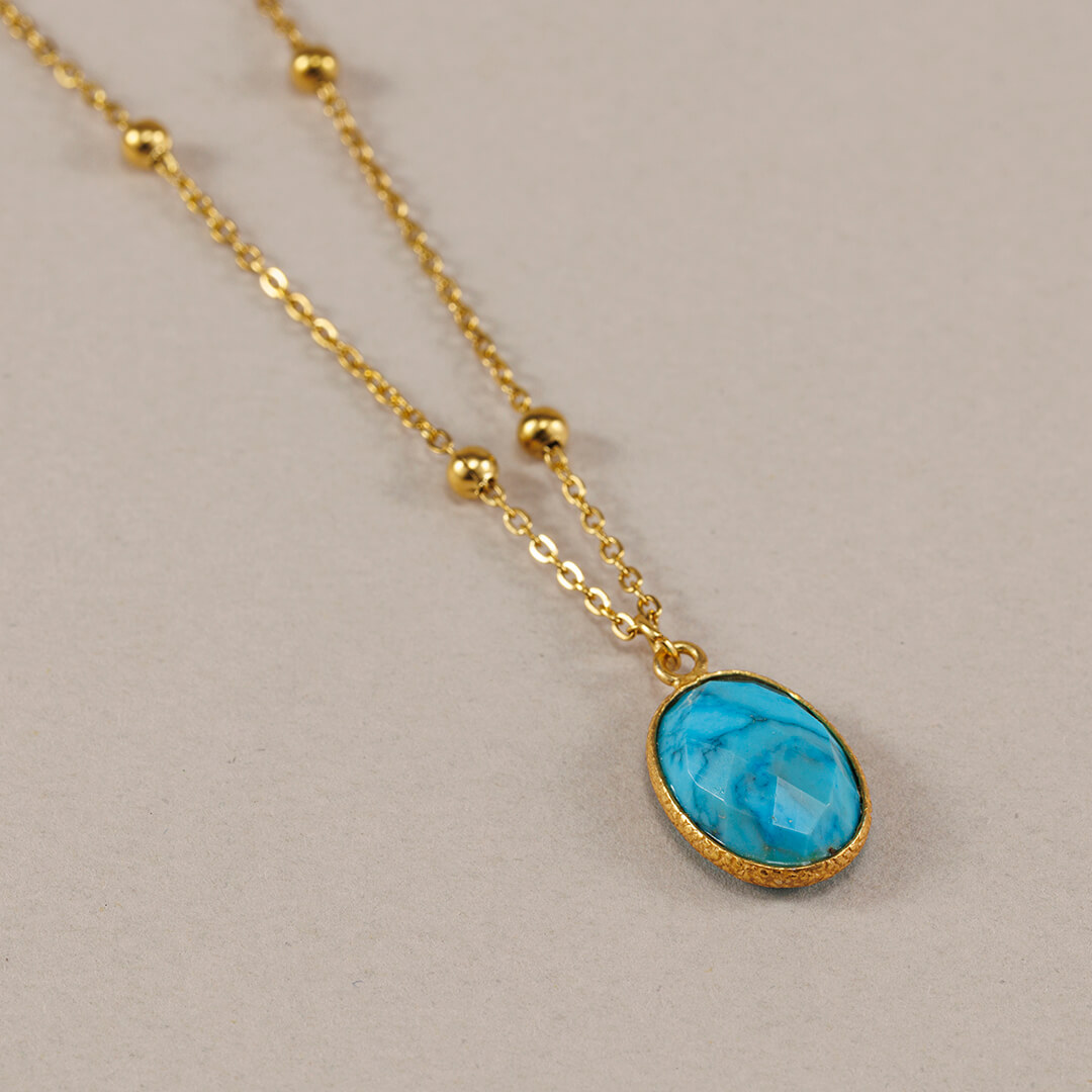 Cadena dorada de acero inoxidable con bolitas intercaladas y colgante de turquesa natural. Elegante, versátil, waterproof e hipoalergénica.