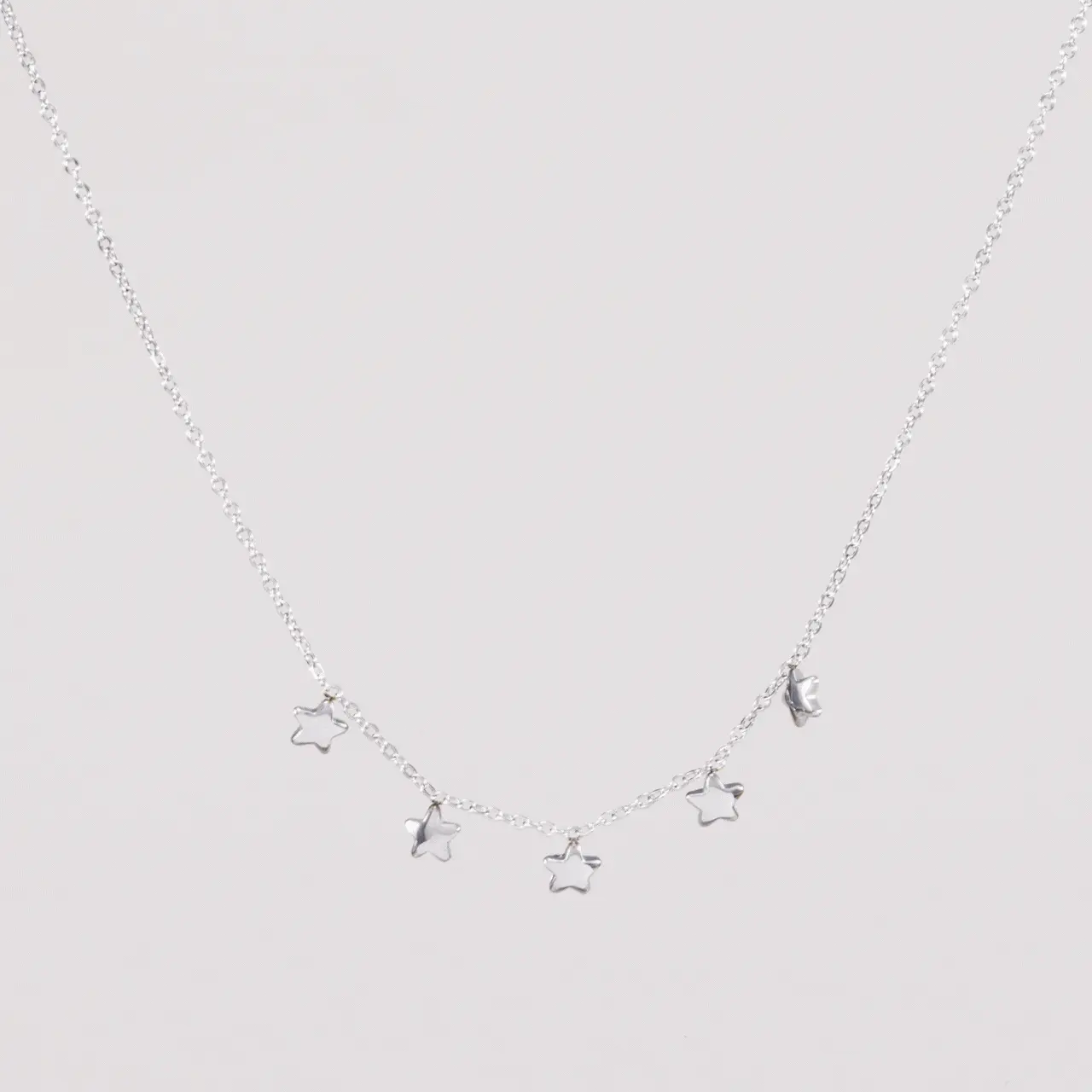 La nuestra Cadena Estrellas combina delicadeza y brillo en un diseño atemporal. Fabricada en acero inoxidable hipoalergénico, es resistente al agua y está disponible en dorado o plateado. Con su largo de 40 cm + 5 cm de alargador, es la joya ideal para acompañar cada día con un toque celestial.