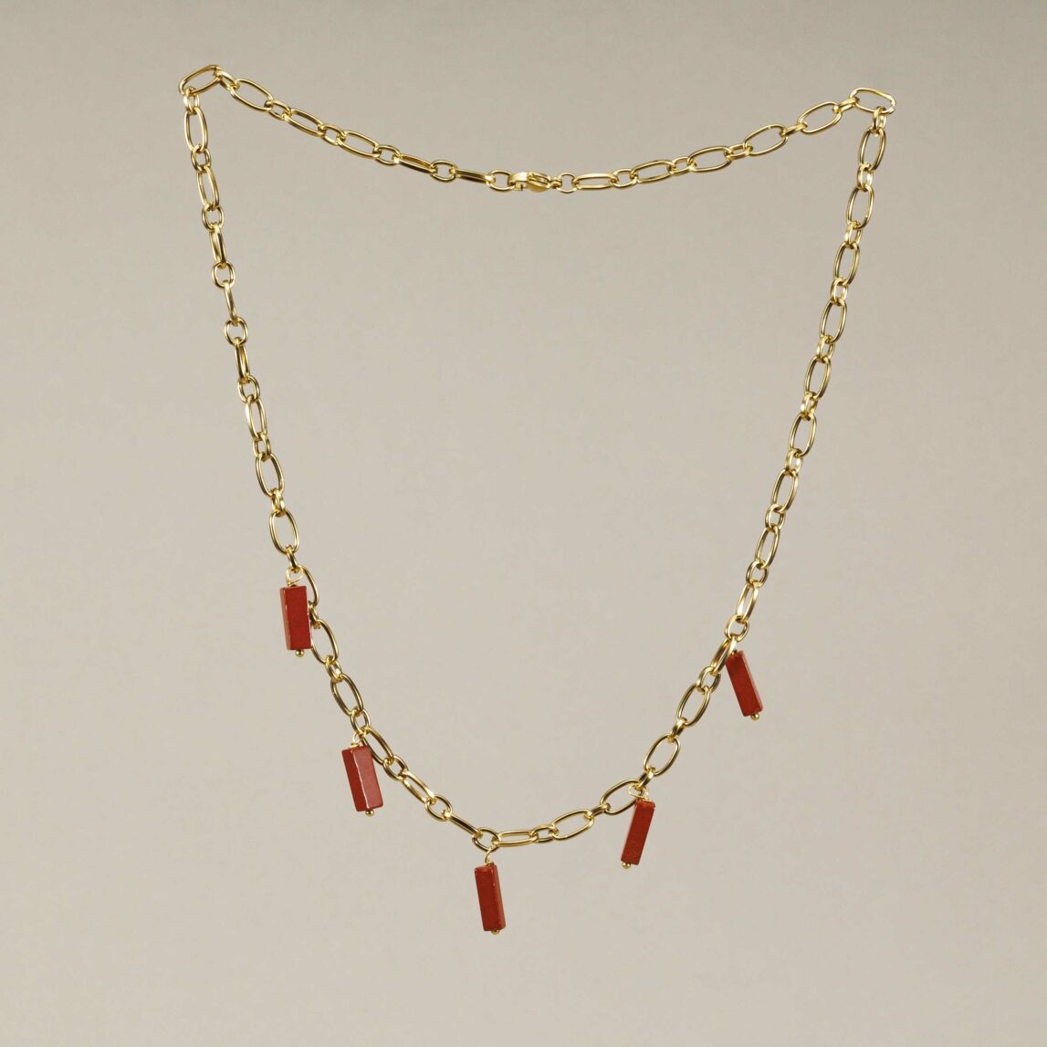 Lo que hace especial a la Cadena Maui son sus cinco piedras naturales colgando de uno de los eslabones. Cada piedra está tallada en forma de cilindro o barra, dándole ese toque moderno y elegante a la vez. Está disponible en tres combinaciones irresistibles: