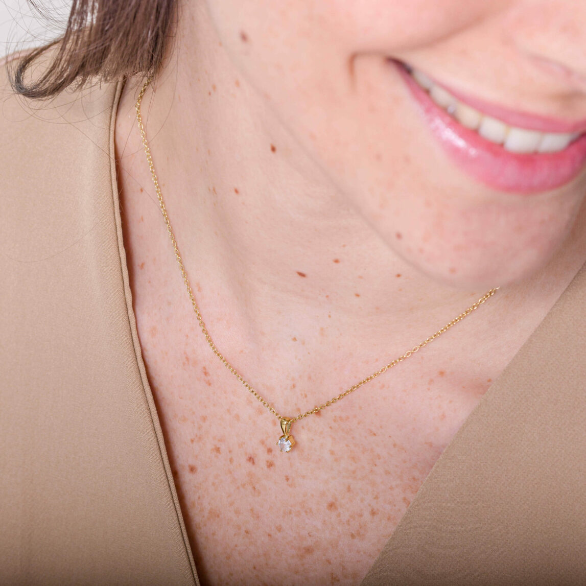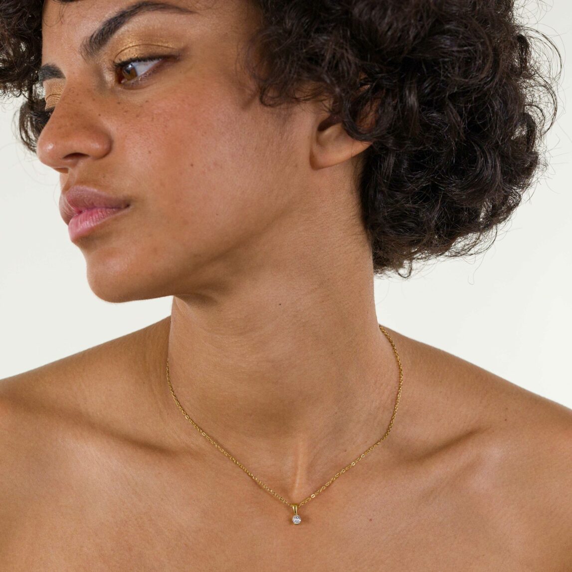 La puedes combinar sola para un look más elegante y discreto, donde le quieras dar toda la importancia. Es también muy fácil de combinar con cualquier otra cadenita o collar, pudiendo jugar con las diferentes alturas o diseños; queda genial por ejemplo con la Cadena Sunny, haciendo juego entre las circonitas blancas de ambas cadenas. Con cualquiera de nuestros pendientes de la opción en dorado le va genial. Si buscas algo con mayor complicidad y subir el look a algo más sofisticado, te recomendamos por ejemplos los Pendientes Alisen; parecerá que el conjunto está creado a posta.
