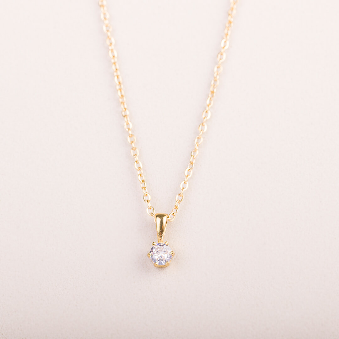 Su diseño es la elegancia personalizada , formada por una cadenita  básica y un pequeño adorno colgante brillante con una circonita blanca.