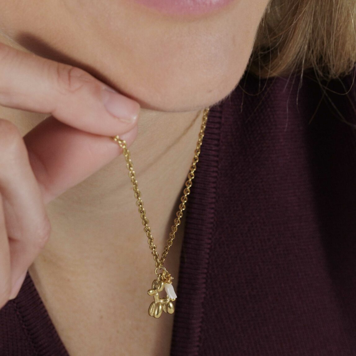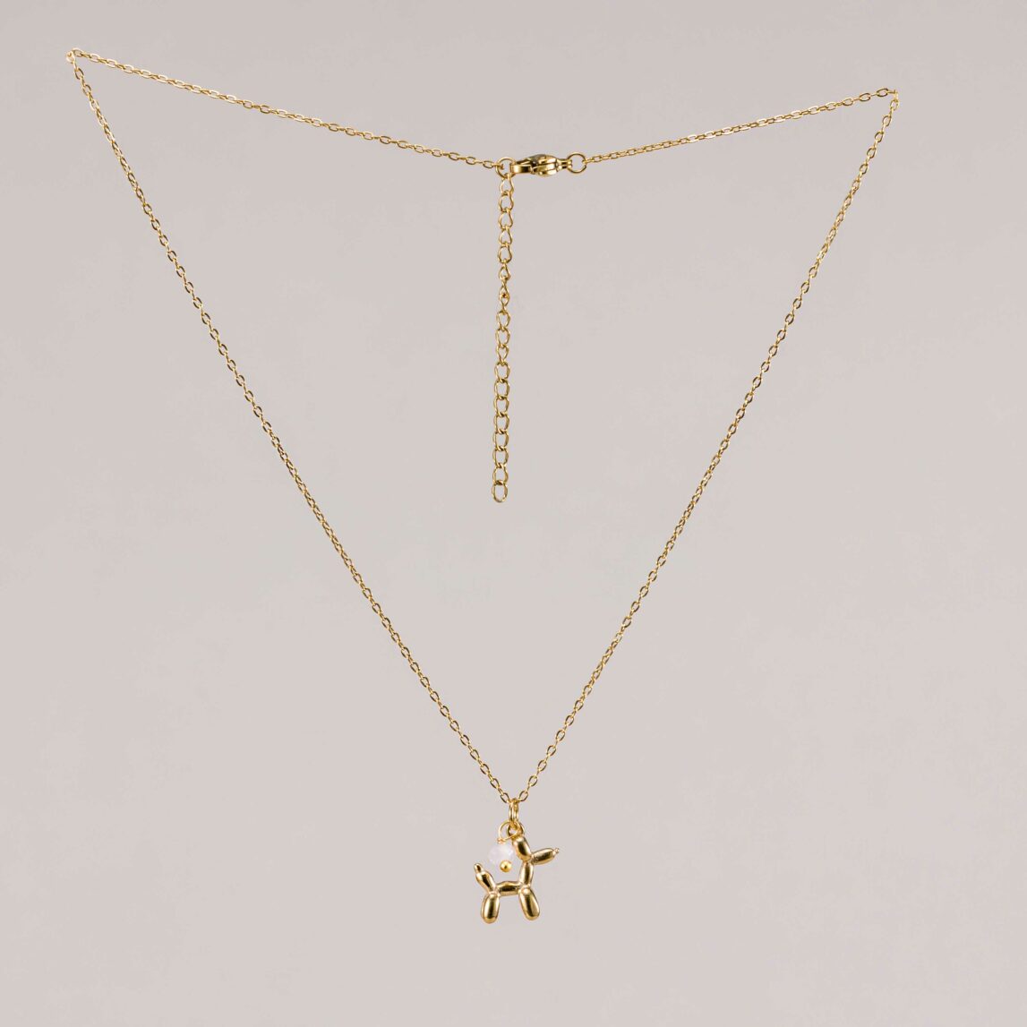 La Cadena Tristán es una joya con carácter, ideal para quienes aman los accesorios con personalidad y un toque lúdico. Su protagonista es un encantador Balloon Dog, símbolo de creatividad y alegría, cuidadosamente diseñado en acero inoxidable con acabado dorado, que aporta brillo, resistencia y un estilo contemporáneo.