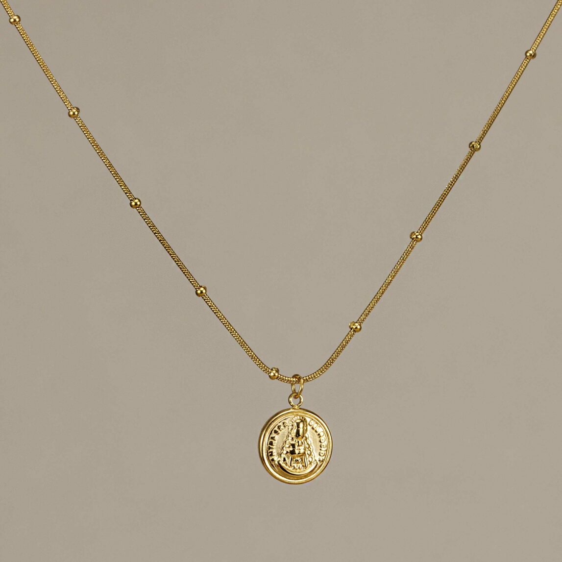 La cadena Virgen del Rocío es esa joya especial que une lo espiritual con lo trendy. Si te gusta llevar algo con significado pero sin renunciar al estilo, esta pieza es para ti. Está montada sobre nuestra icónica Cadena Caribe, una cadena semirrígida con pequeñas bolitas intercaladas que le dan un toque delicado pero con mucha personalidad.