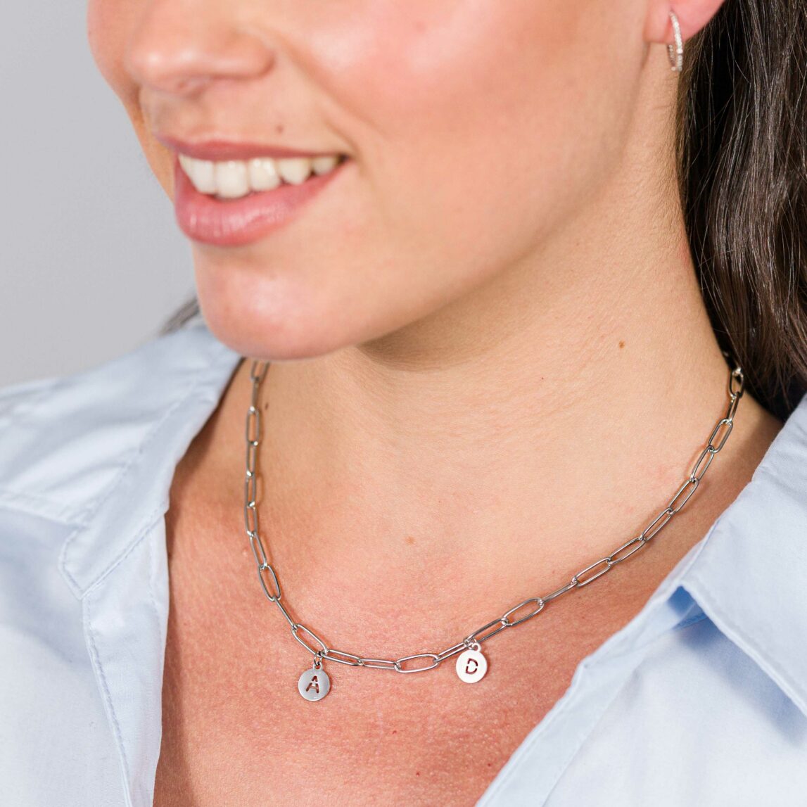 Las Chapas de Iniciales / Letras DW, un clásico de Darwin Collection, ahora también están disponibles en color plateado. Están hechas de acero inoxidable, miden 8 mm y son resistentes al agua y al uso diario. Se venden por separado (sin cadena) y puedes combinarlas con nuestras cadenas favoritas: Caribe, Briana, Cartier, Pilar o de eslabones. Si compras varias chapas, indícanos el orden en las notas del pedido y te las enviamos ya montadas. Cada chapa incluye un asa plateada segura y fácil de montar con alicate.