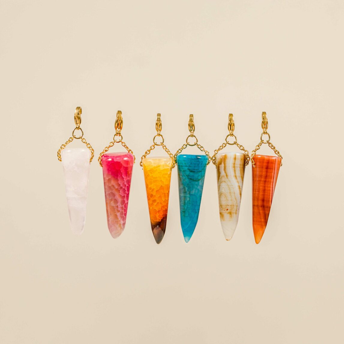 Las piedras de los charm son piedras naturales, todas varían en función de la pieza, porque al ser naturales tienen vetas y otras imperfecciones propias: