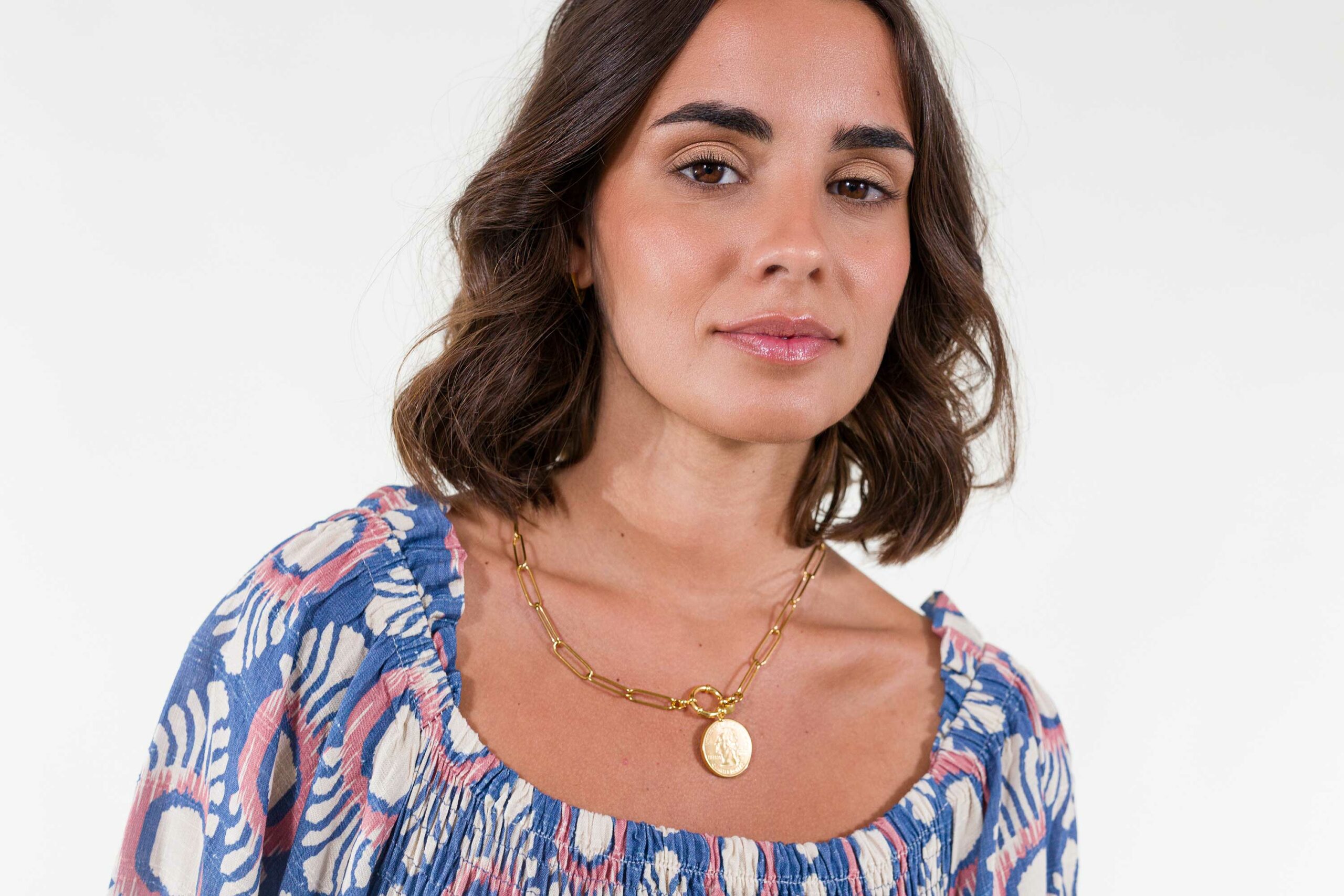Este charm es súper versátil y puedes combinarlo con cualquiera de nuestras cadenas básicas como la Caribe, Lina, o Briana. Úsalo para darle un toque único a tu collar favorito, o incluso combínalo con otros charms para crear una pieza totalmente personalizada que refleje tu estilo.