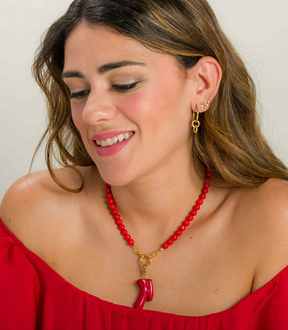 Disponible en dos colores imprescindibles —coral rojo y blanco —, este charm natural es perfecto para combinar con nuestros collares de cierre marinero y también puede adaptarse a cualquier cadena o accesorio que permita añadir charms.