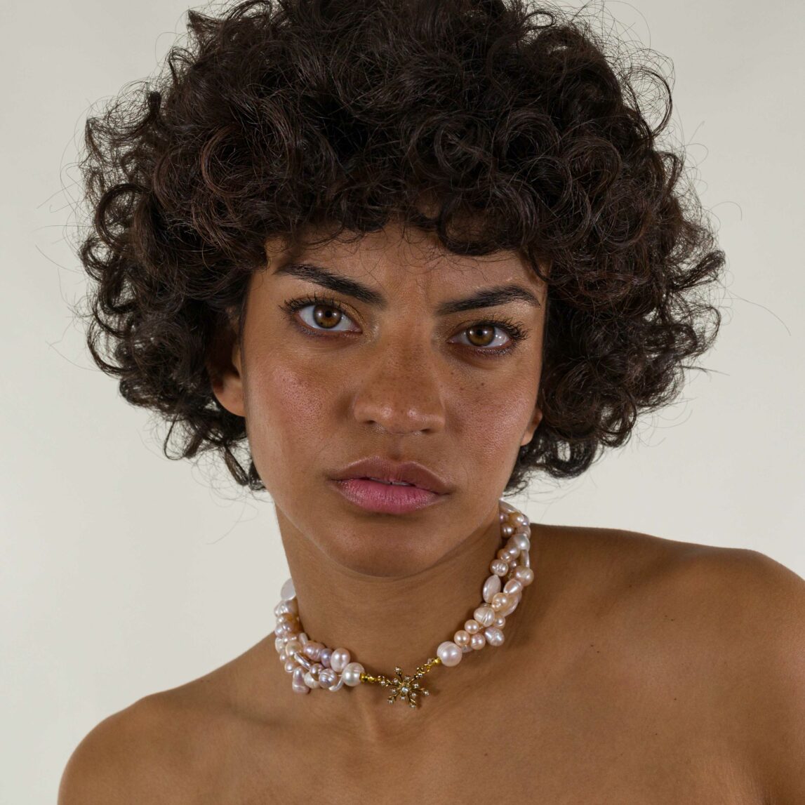 También puedes elegir entre el color de  las perlas; puedes coger el choker con todas las perlas blancas, o la otra opción lleva una mezcla en el color de las perlas ( rosas y nudes ).