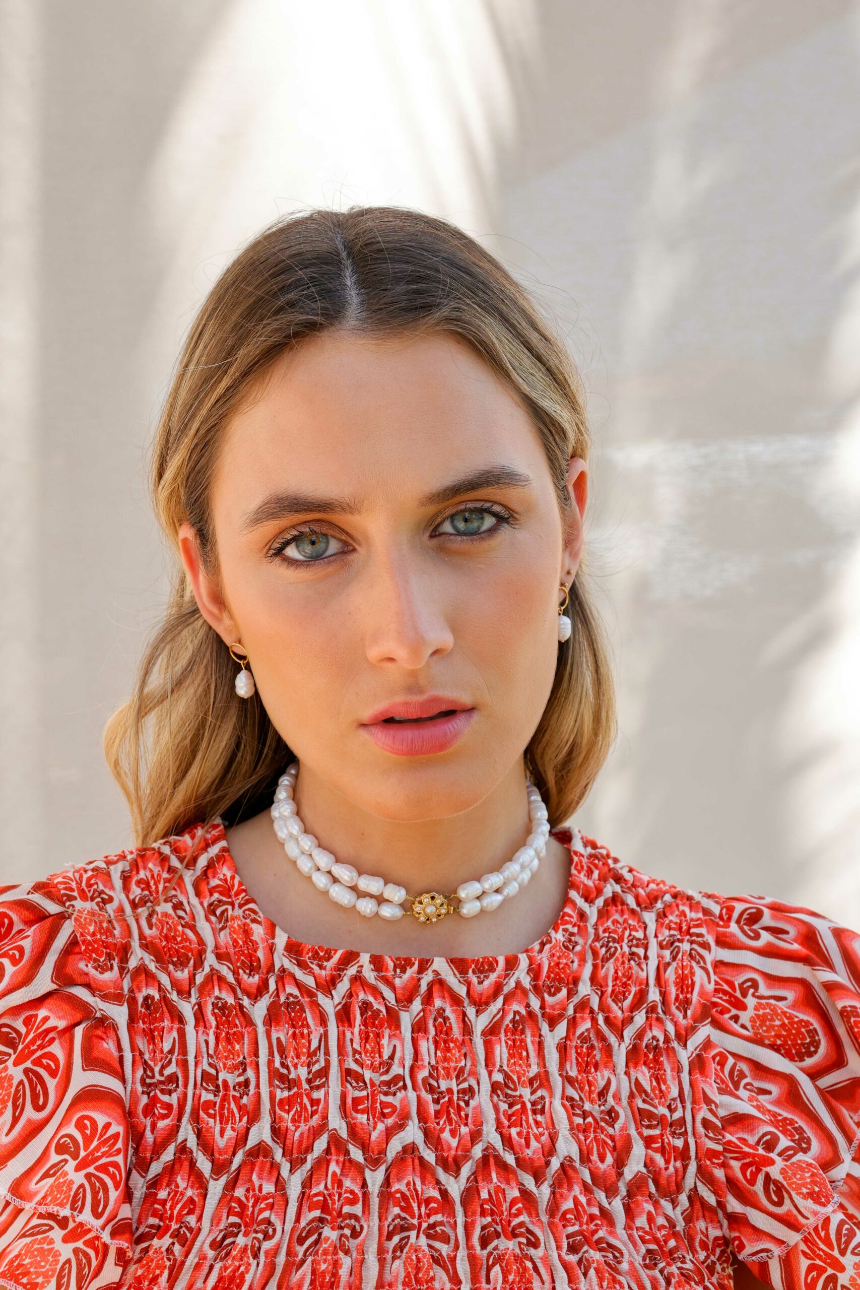 Pero aquí está el secreto: este choker no es solo para novias. Si eres una invitada en una boda u otro evento especial, el Choker Lady Di dorado te dará ese toque de distinción y elegancia que estás buscando. Combinado con nuestros Pendientes perlas engarzadas, ¡serás la invitada más destacada de la celebración!