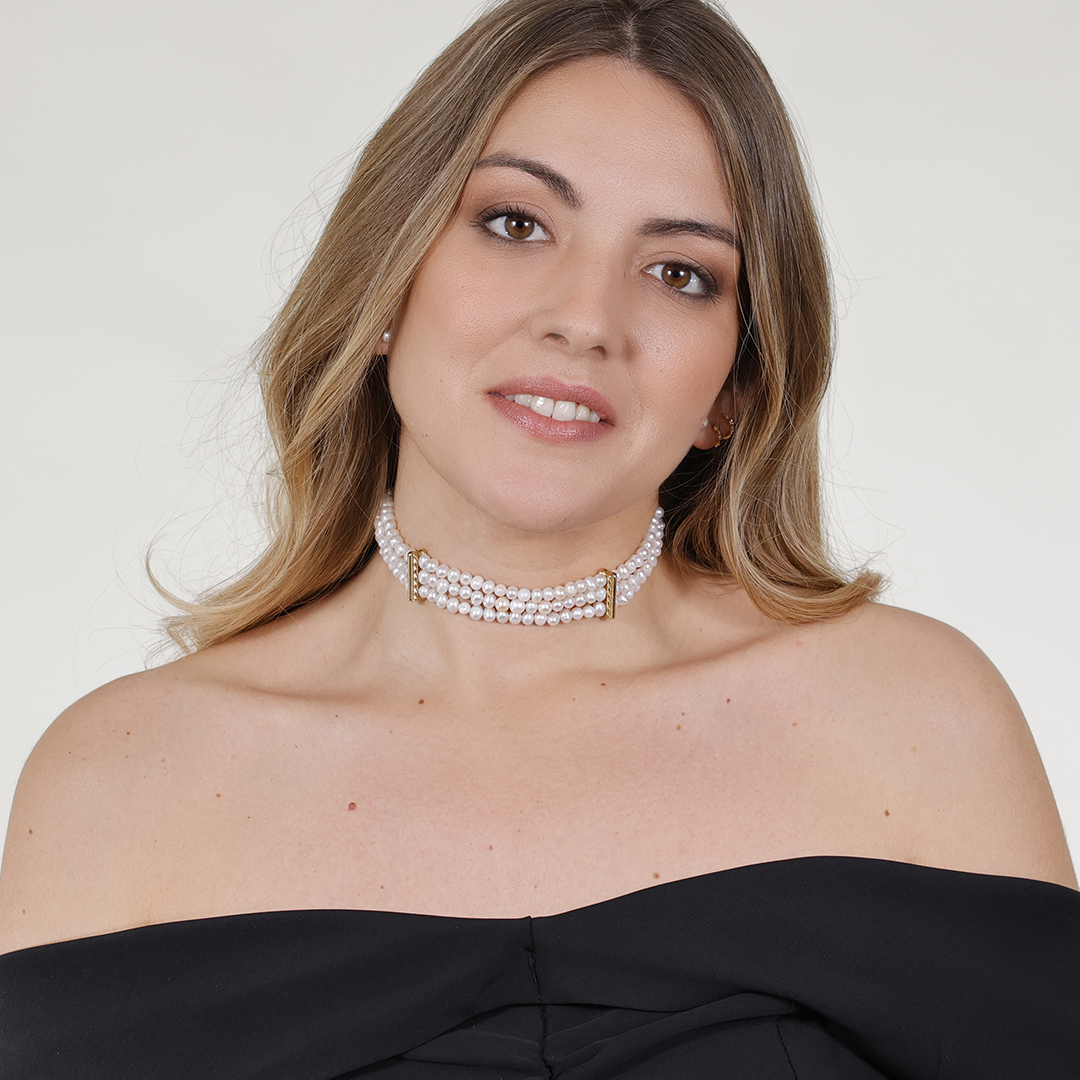 Y aquí viene lo mejor: este choker no es solo para un día. ¿Por qué limitarse cuando puedes lucir esta belleza en diferentes ocasiones? Combínalo con nuestros Pendientes perlas engarzadas y serás la invitada más chic y sofisticada en cualquier celebración.