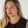 Y hablemos del color… ¿Hay algo más veraniego que el rojo? Es un tono que favorece a todas y que aporta ese toque fresco, alegre y lleno de personalidad a cualquier look. Tanto si lo llevas con un vestido, como con una camiseta básica y vaqueros, el Collar La Caleta eleva tu outfit en segundos.