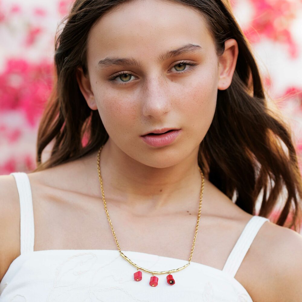 El Collar Marbella de Darwin Collection es una pieza mediterránea elegante y fresca, perfecta para cualquier ocasión. Fabricado en acero inoxidable dorado, es waterproof e hipoalergénico, ideal para uso diario. Cuenta con una cadena de eslabones y una barra central dorada decorada con raíces de coral rojo que aporta sofisticación. Mide 48 cm con 5 cm de alargador para ajustar. Combínalo con los pendientes a juego para un look veraniego impecable.