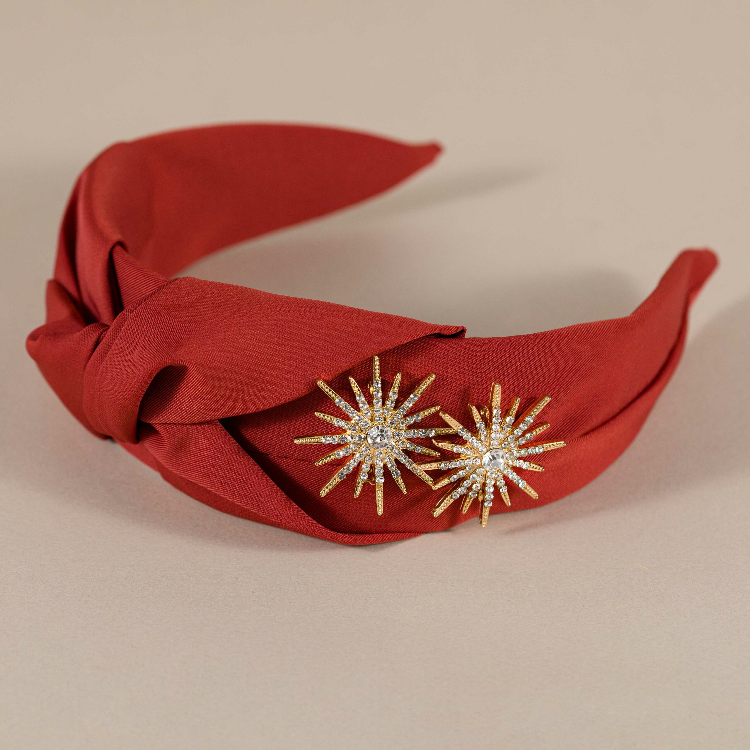 En el lateral de la diadema, encontrarás un adorno muy especial en forma de estrella de varias puntas, que añade un toque de elegancia. Además, presenta una arruga tipo nudo en el centro que le da un toque diferente y original.