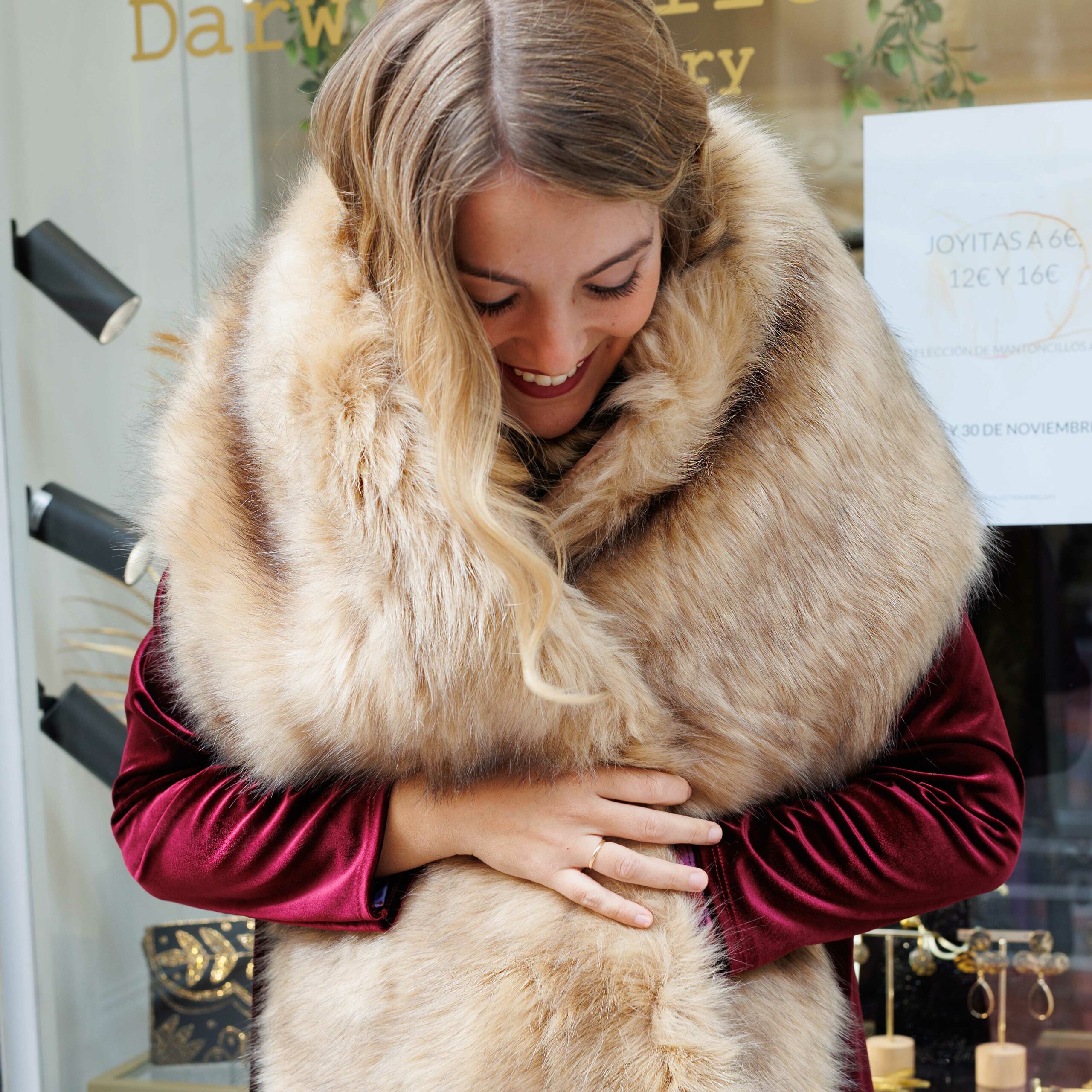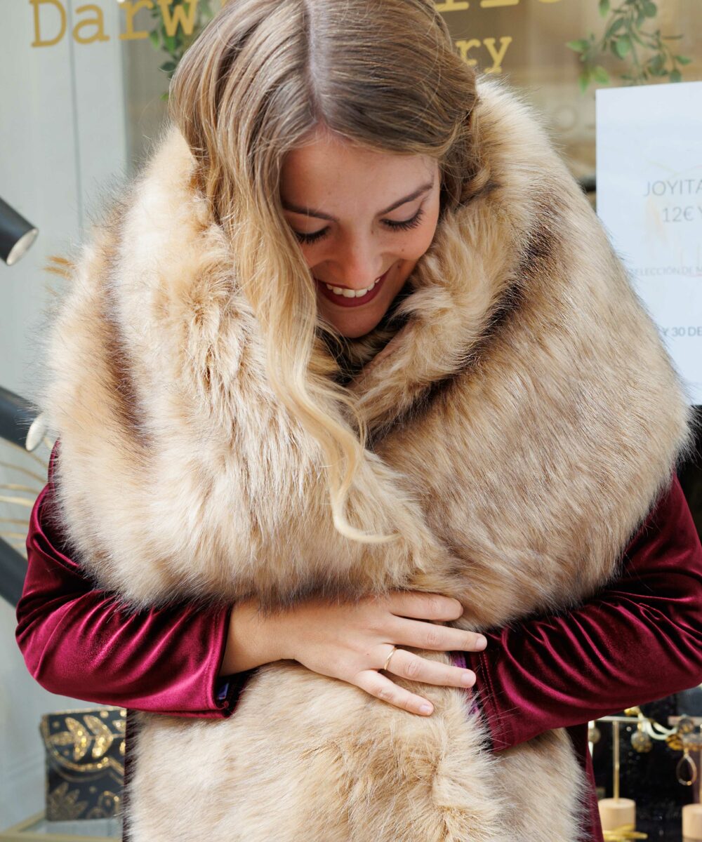 ¡Eleva tu estilo con nuestra sofisticada Estola Invitada de  pelo sintético! Este accesorio cobra especial relevancia cuando llegan los eventos más frescos de la temporada. ¿Puede ser más ideal esta estola de pelo?
