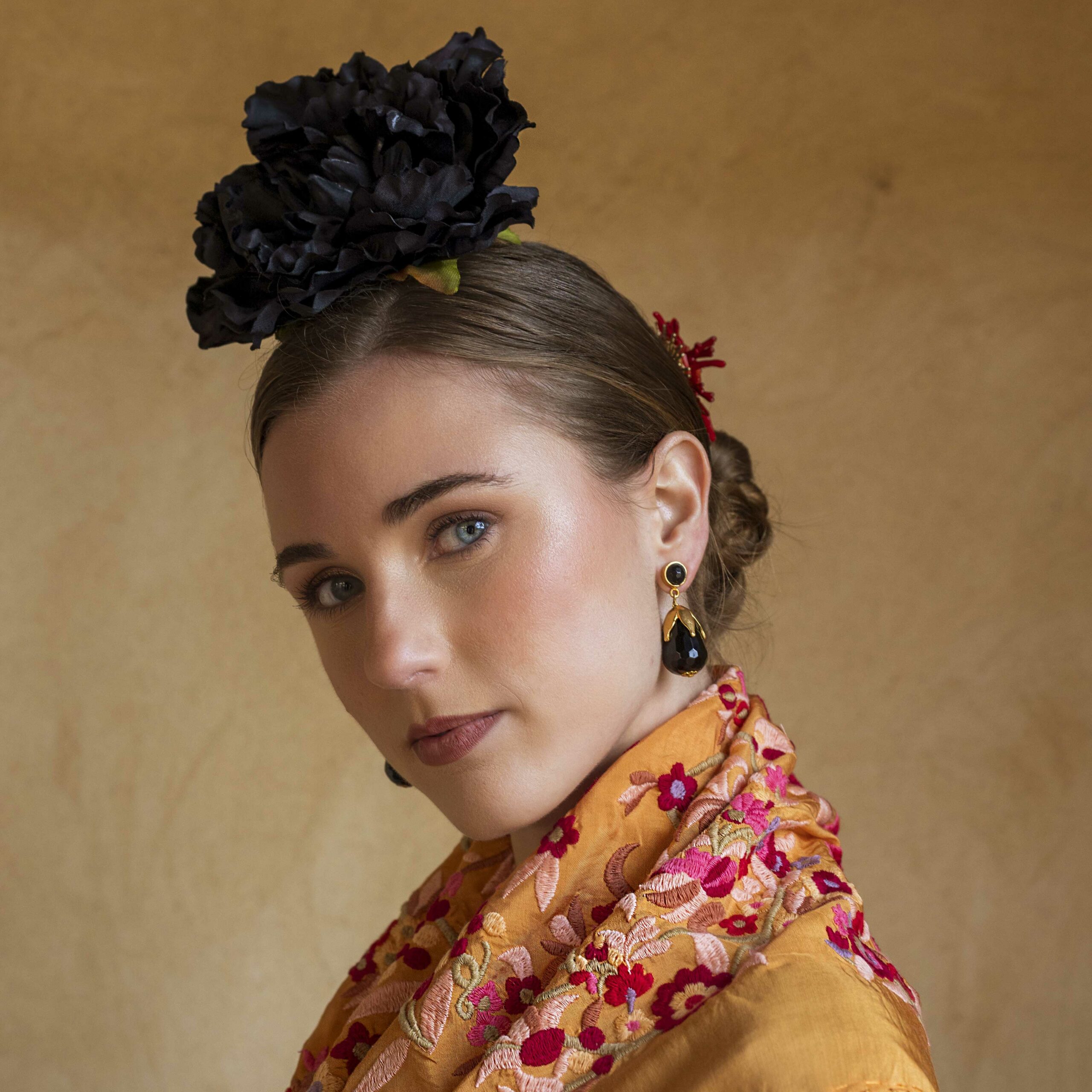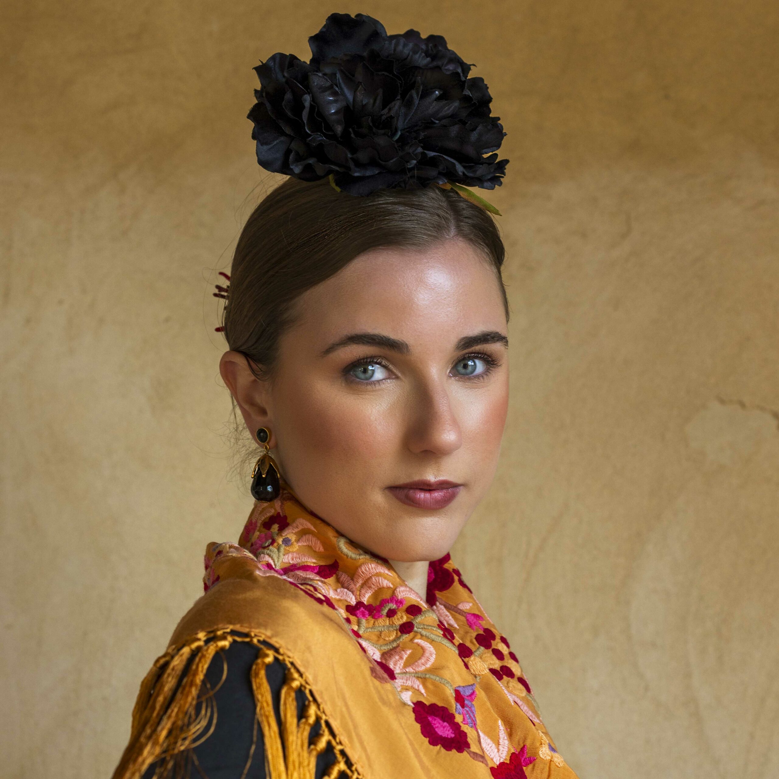 ¡Prepárate para lucir como una auténtica  flamenca con nuestro increíble Flor Flamenca Peonía Negra! Esta flor de estilo peonia es todo lo que necesitas para darle el toque final perfecto a tu peinado flamenco. Con un generoso diámetro de  16,5 cms y un elegante color negro, esta pieza artesanal elaborada en Sevilla elevará tu look a otro nivel.