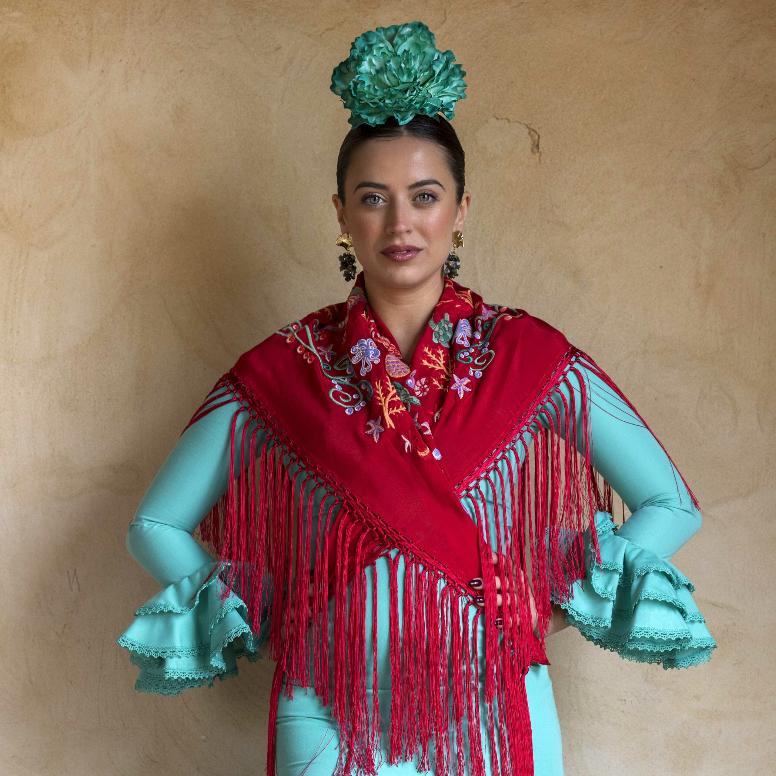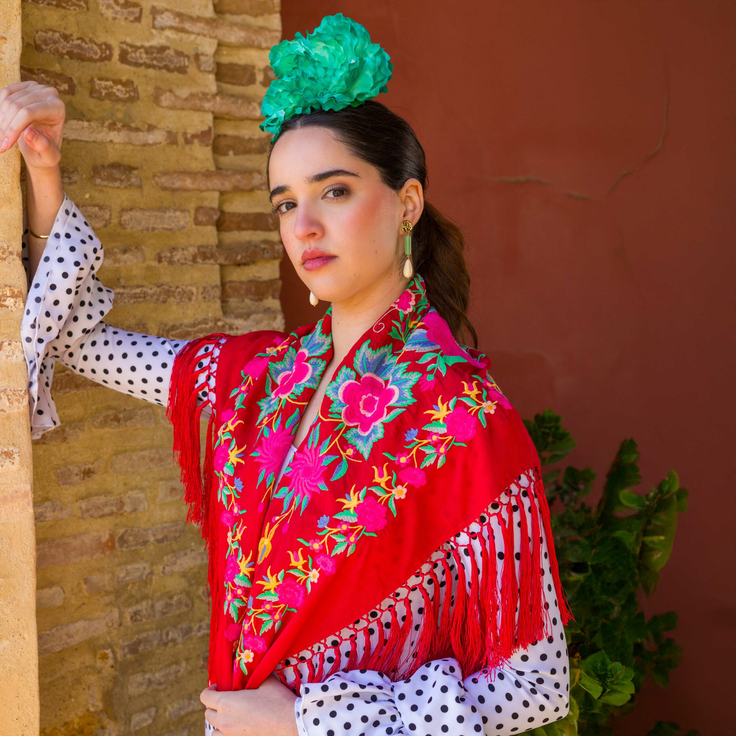 Esta pieza artesanal, está teñida a mano con amor y cuidado en Sevilla, pensando en la combinación ideal con nuestros maravillosos mantoncillos.