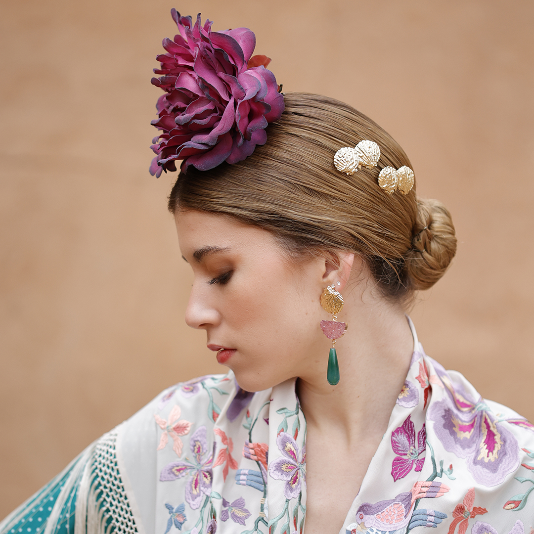 Imagina completar tu moño, recogido o trenza de espiga con una de nuestras hermosas flores de gitana. ¡Será el toque final que necesitas para brillar como una estrella en la feria!