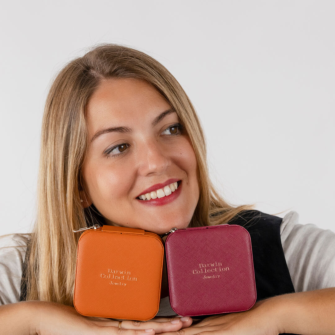 Disponible en cuatro hermosos colores —rosa, burdeos, azul y caldera—, nuestro Joyero de Piel Darwin Collection es una opción ideal para regalar estas navidades o para consentirte con un detalle especial que combina estilo, funcionalidad y compromiso con materiales veganos. No solo es un joyero práctico, sino también un accesorio elegante que complementa tu estilo y refleja tu amor por las joyas bien cuidadas.