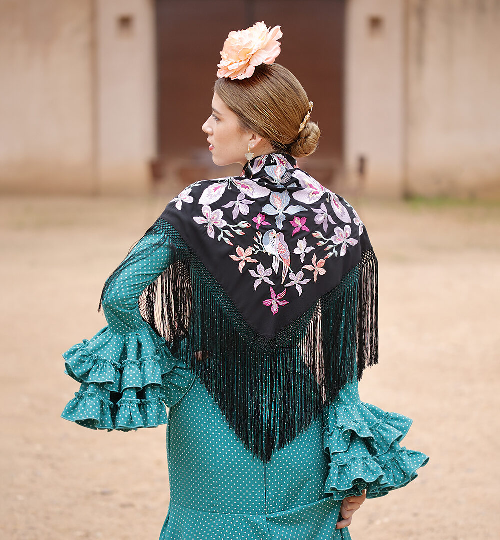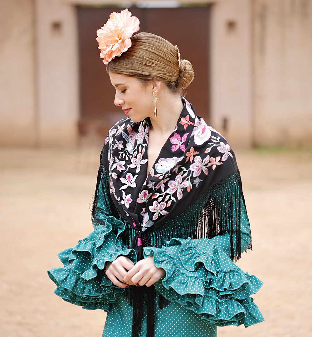 El mantón para traje de flamenca es un básico indispensable en Andalucía y forma parte esencial del atuendo flamenco de calidad. En nuestra región, vestirse adecuadamente para ferias y eventos es una tradición cuidada al detalle.