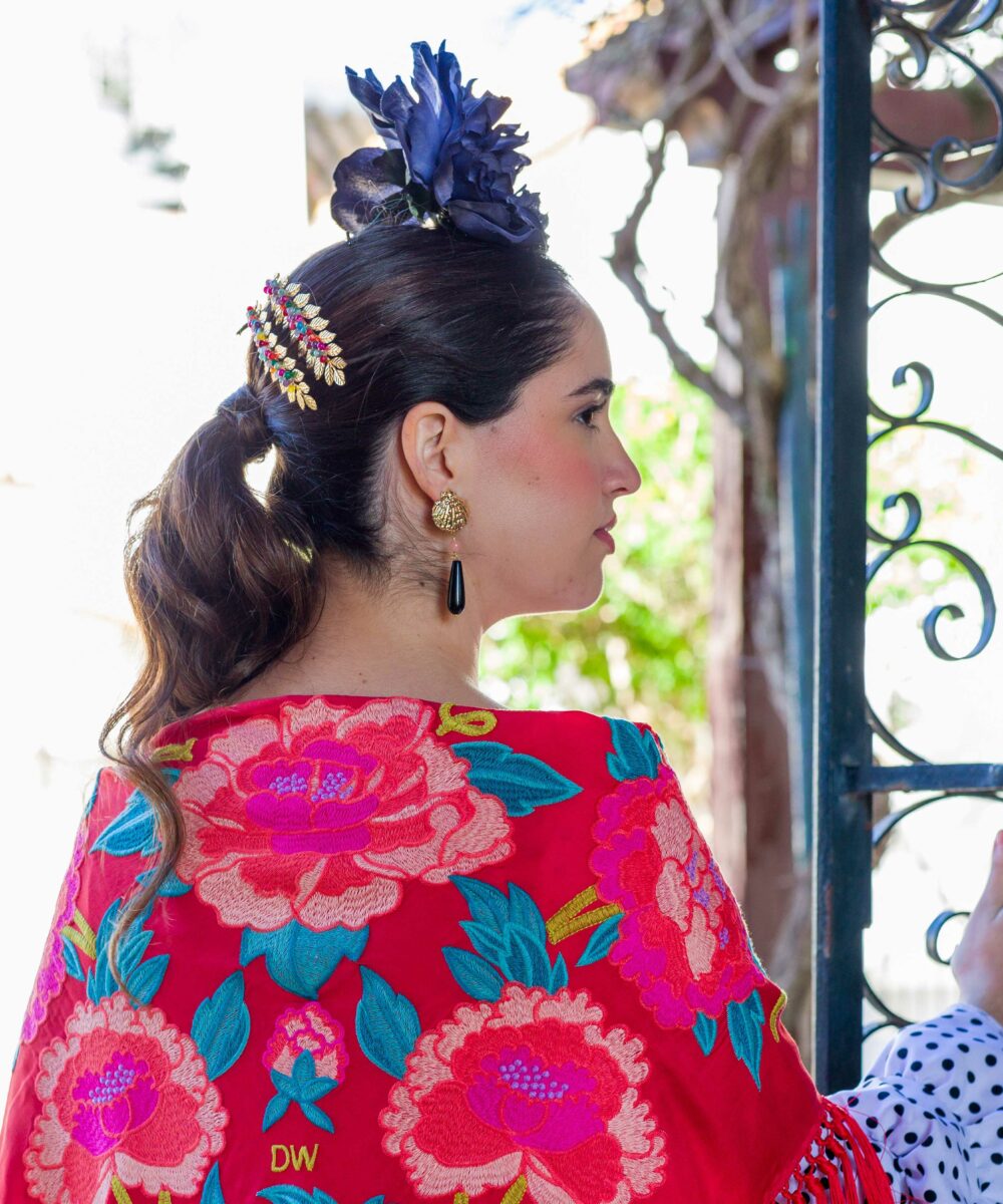 Este mantoncillo no es solo un complemento, sino una pieza imprescindible para el traje de flamenca de alta calidad. En Darwin Collection, cuidamos cada detalle para que puedas encontrar el complemento ideal para cualquier evento, desde la feria hasta bodas o celebraciones especiales. ¡Completa tu look con los pendientes y peinecillos de nuestra colección y deslumbra en tu próxima feria con un estilo único y auténtico!