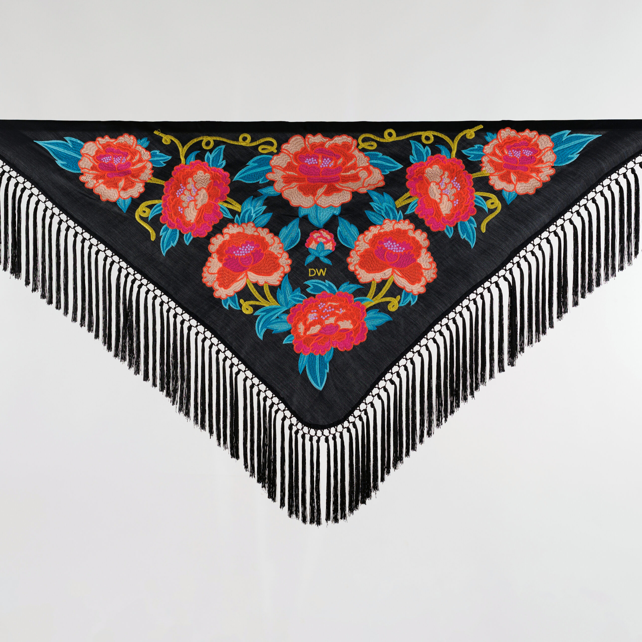 Nuestro Mantón Carmen DW en color negro  es parte de la nueva colección flamenca 2025, que ya está llegando a nuestro almacén.
