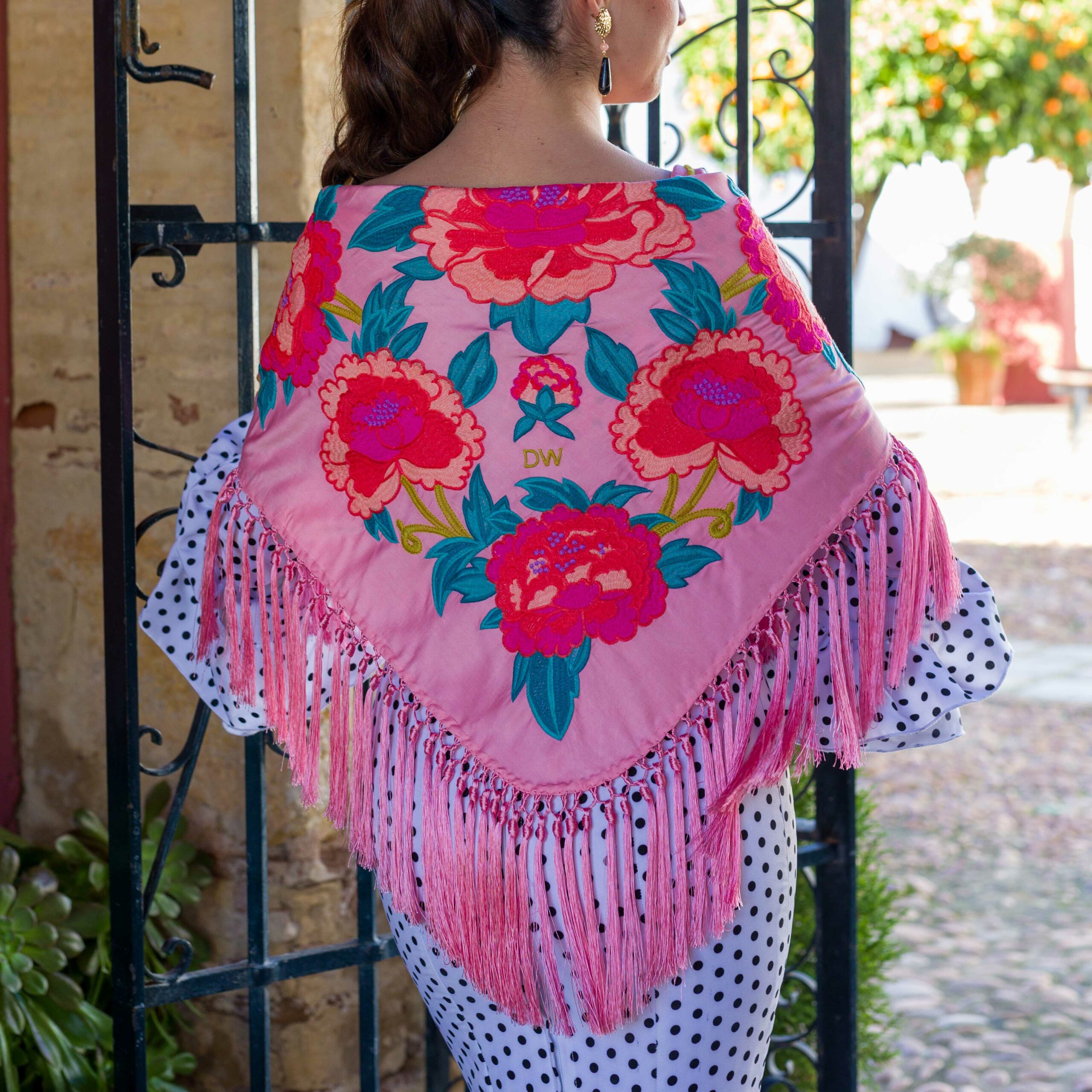 Nuestro Mantón Carmen DW en color rosa  es parte de la nueva colección flamenca 2025, que ya está llegando a nuestro almacén.