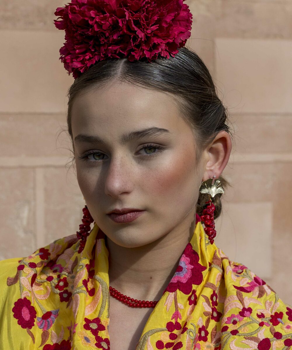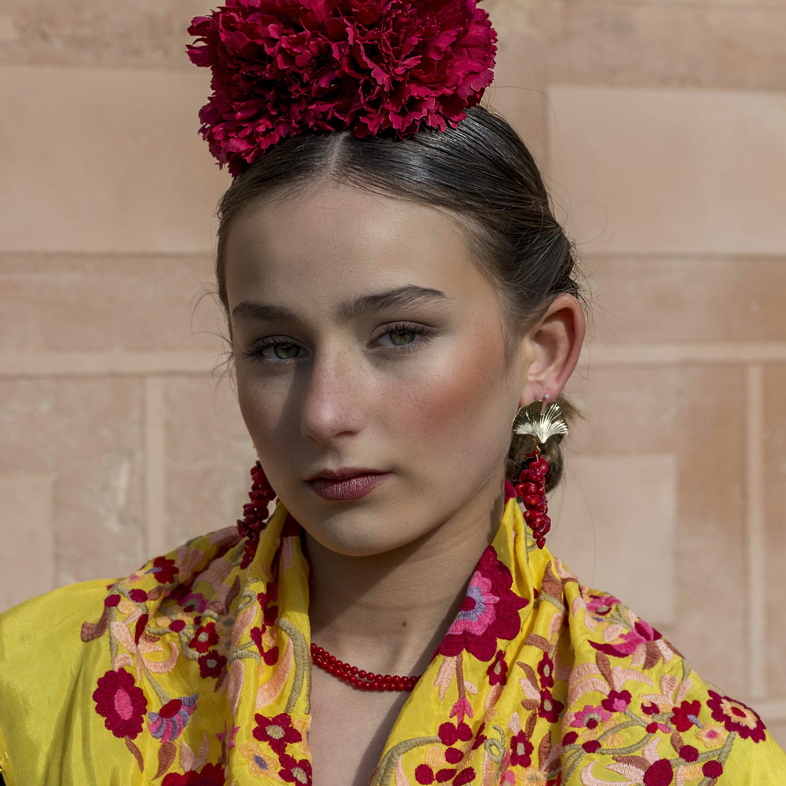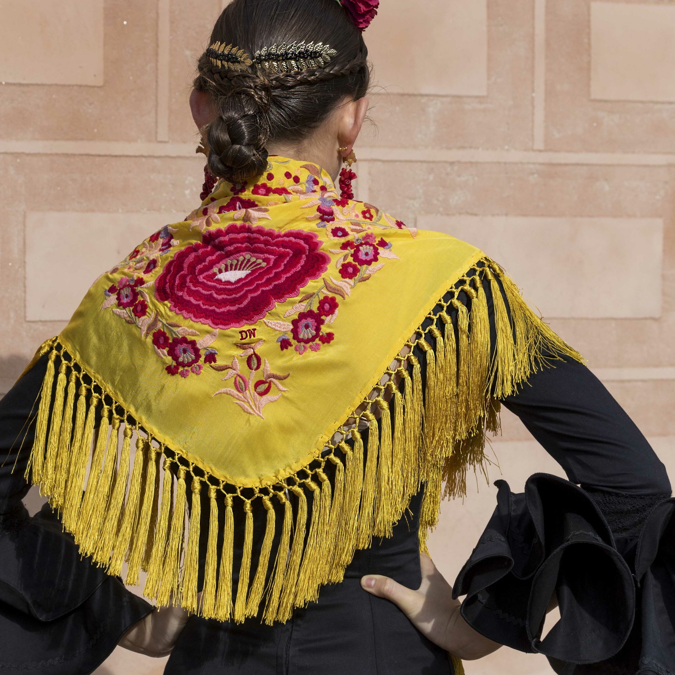 Además, no olvides explorar nuestra colección de complementos, como pendientes y peinecillos, diseñados y fabricados por nuestra marca aquí en el taller. ¡Atrévete a lucir única y elegante en la próxima feria con el Mantoncillo Lola DW en amarillo!