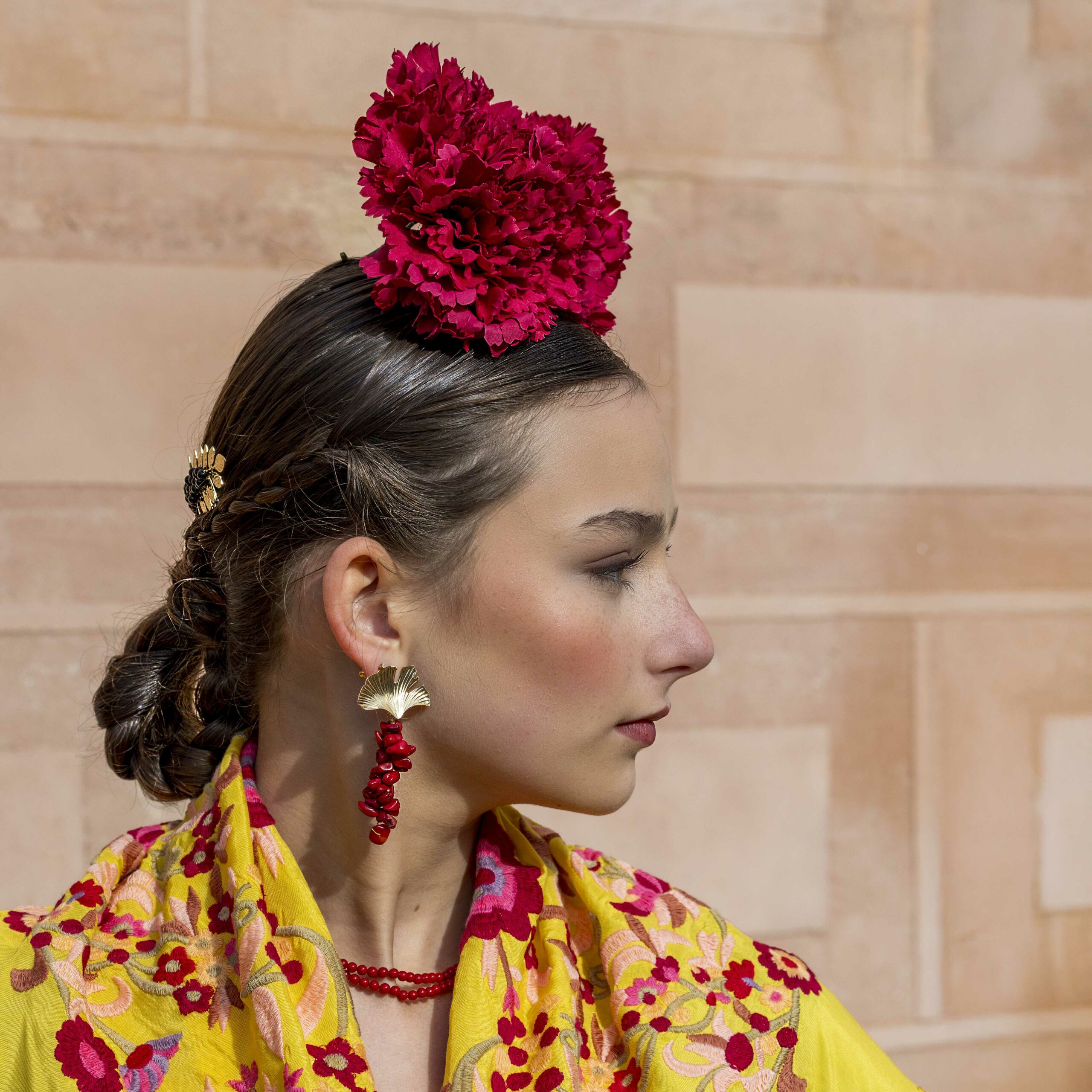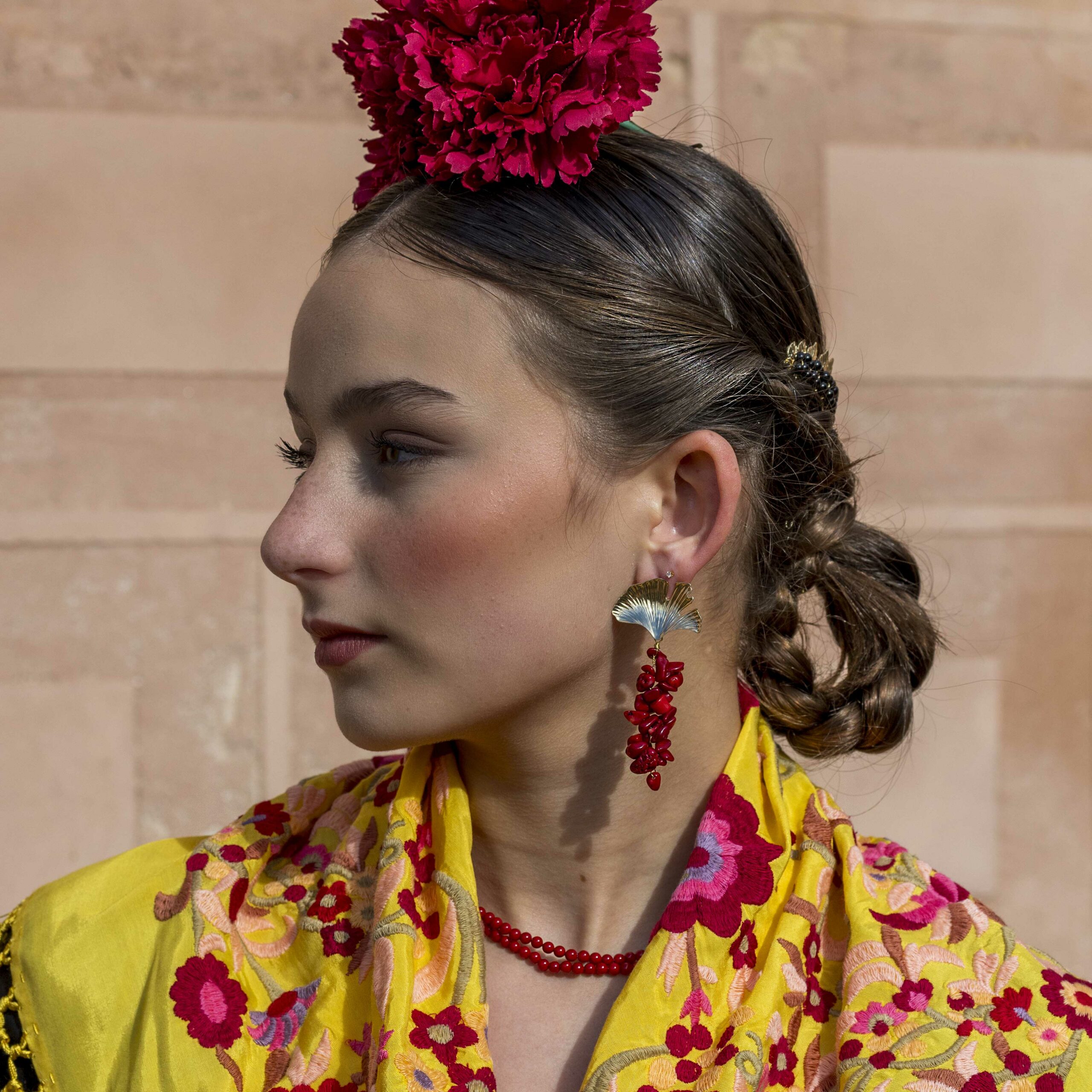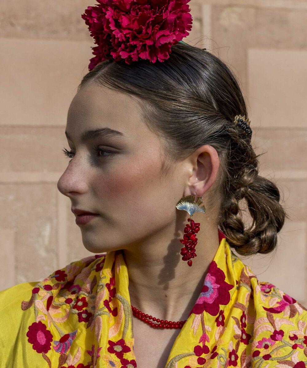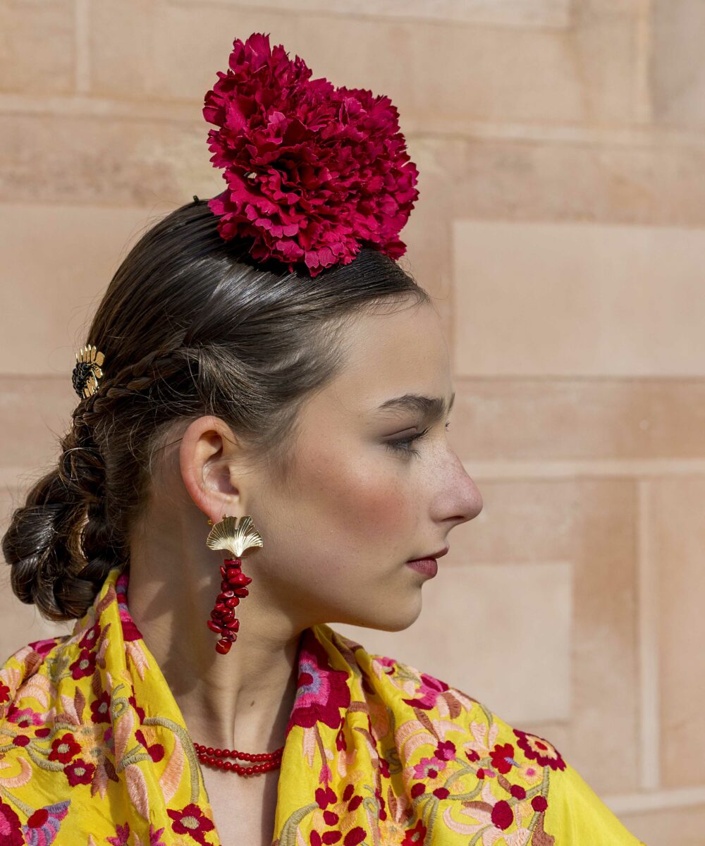Además, no olvides explorar nuestra colección de complementos, como pendientes y peinecillos, diseñados y fabricados por nuestra marca aquí en el taller. ¡Atrévete a lucir única y elegante en la próxima feria con el Mantoncillo Lola DW en amarillo!
