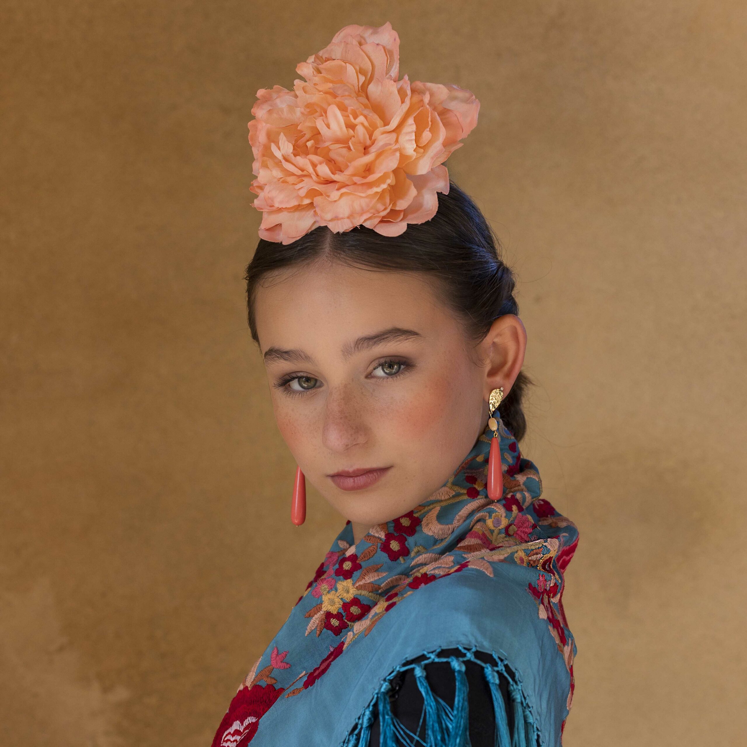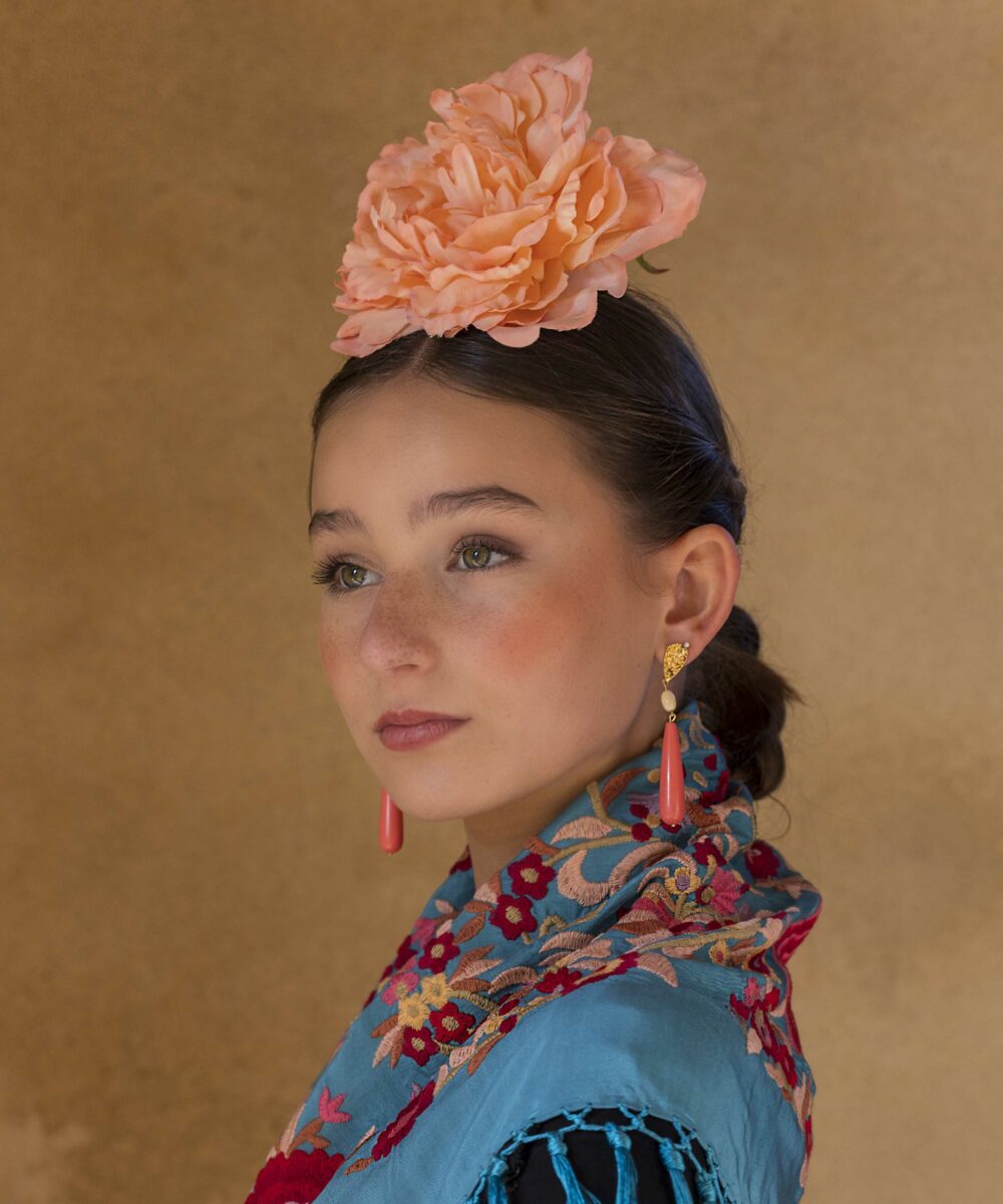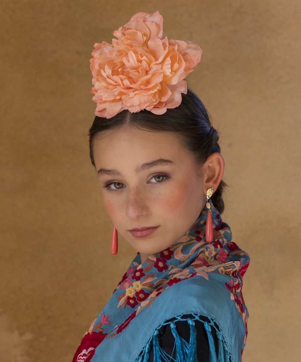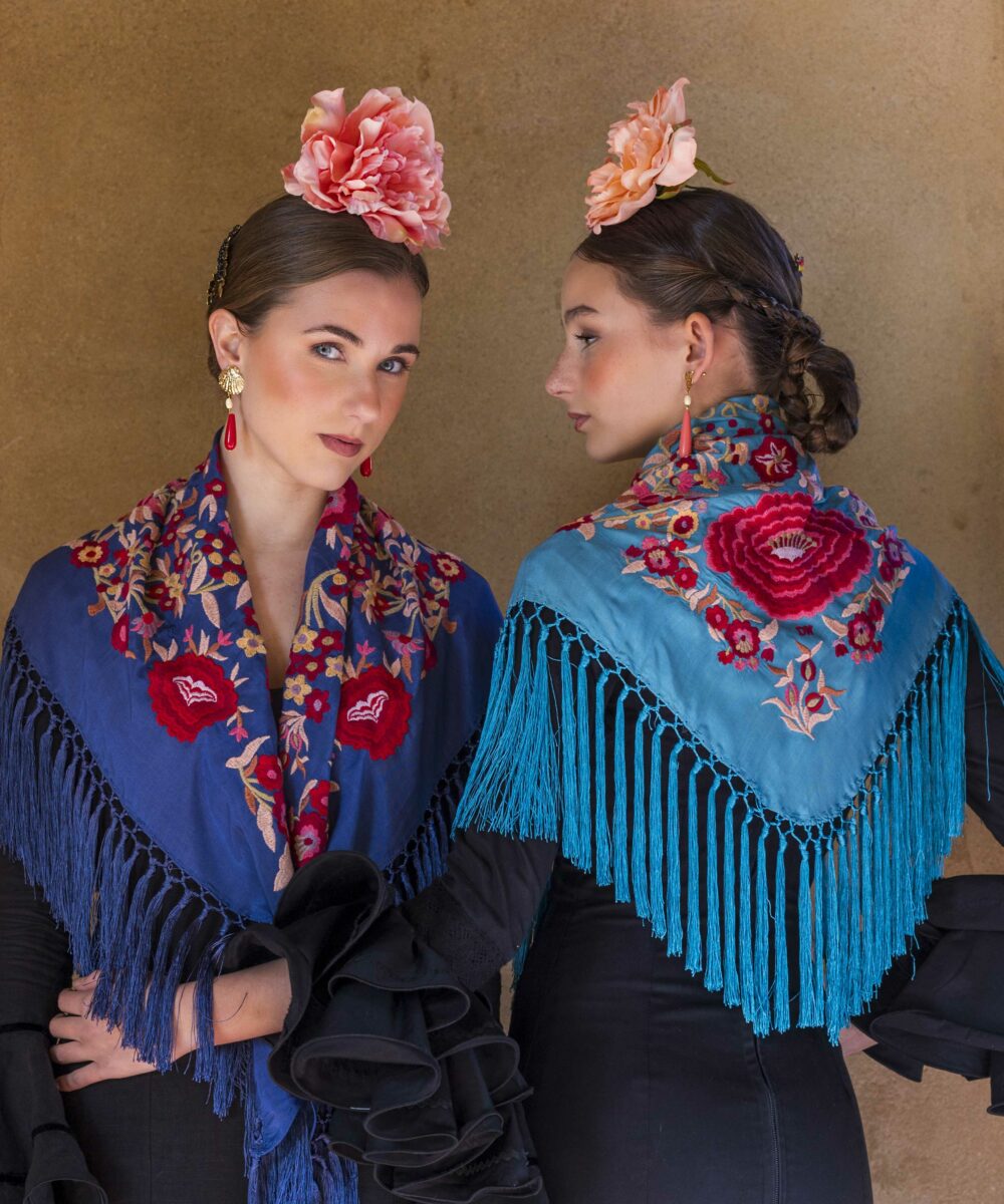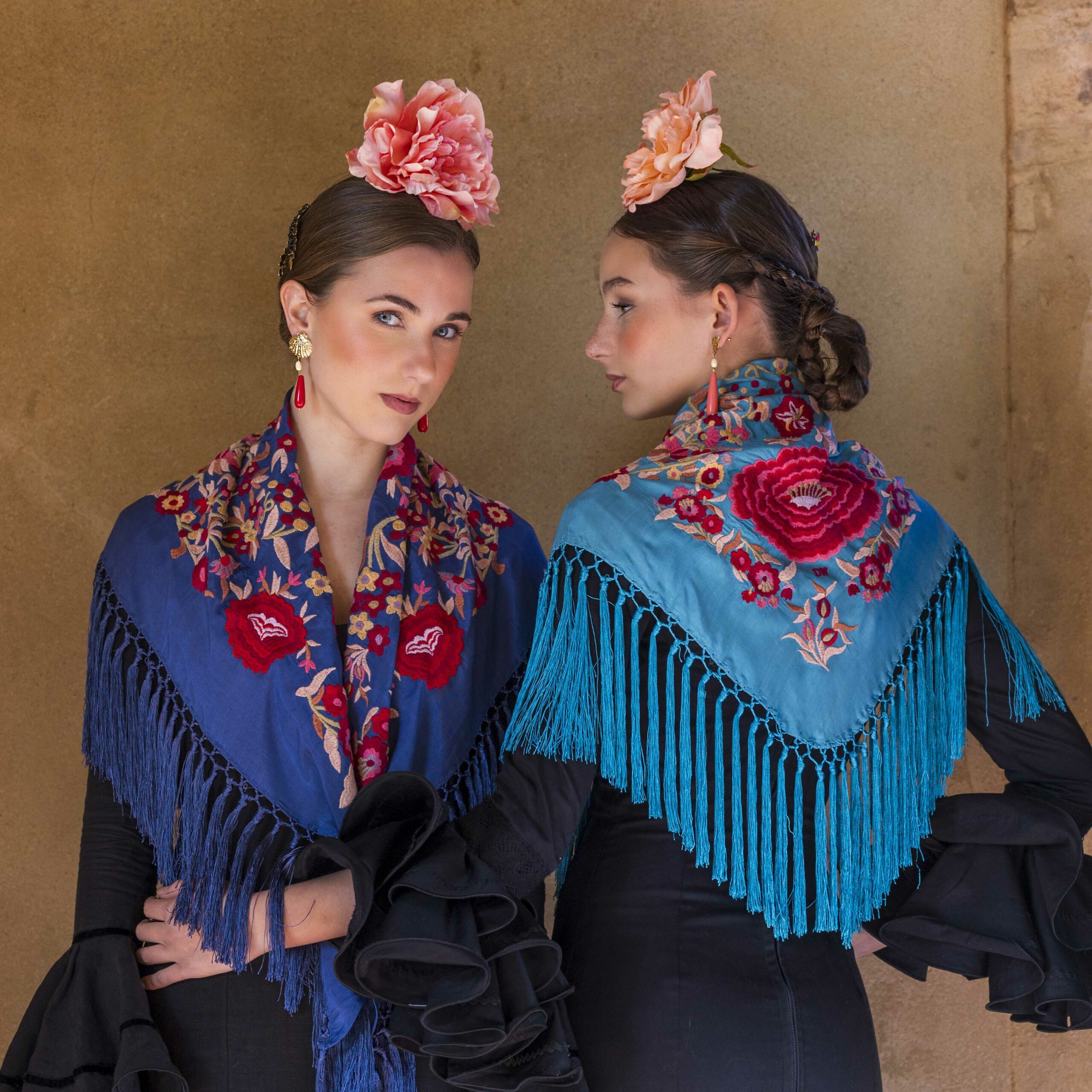 Además, no olvides explorar nuestra colección de complementos, como pendientes y peinecillos, diseñados y fabricados por nuestra marca aquí en el taller. ¡Atrévete a lucir única y elegante en la próxima feria con el Mantoncillo Lola DW en azul capri!