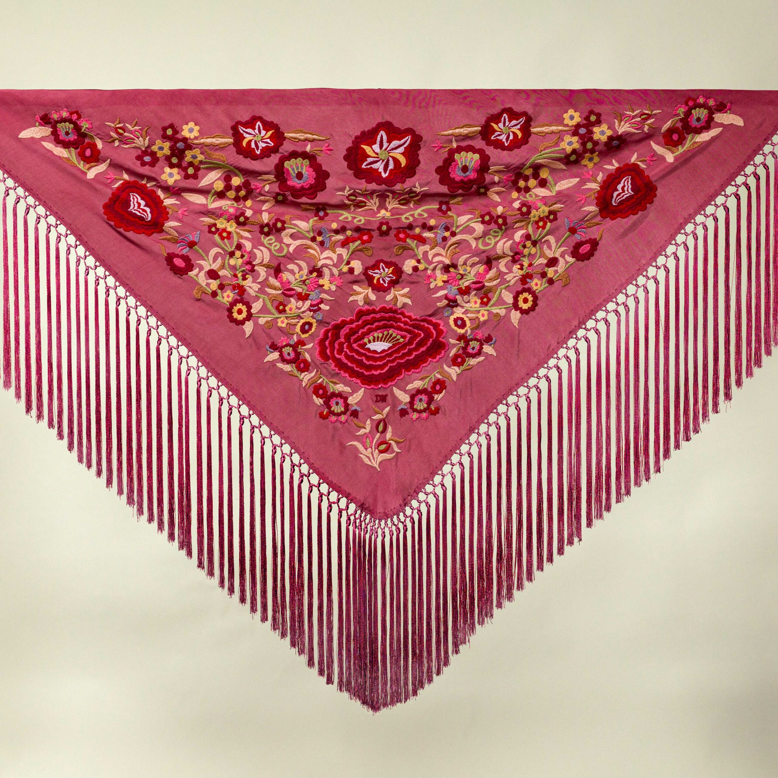 Nuestro mantoncillo está confeccionado en seda de algodón, bordado a máquina y flecado a mano .