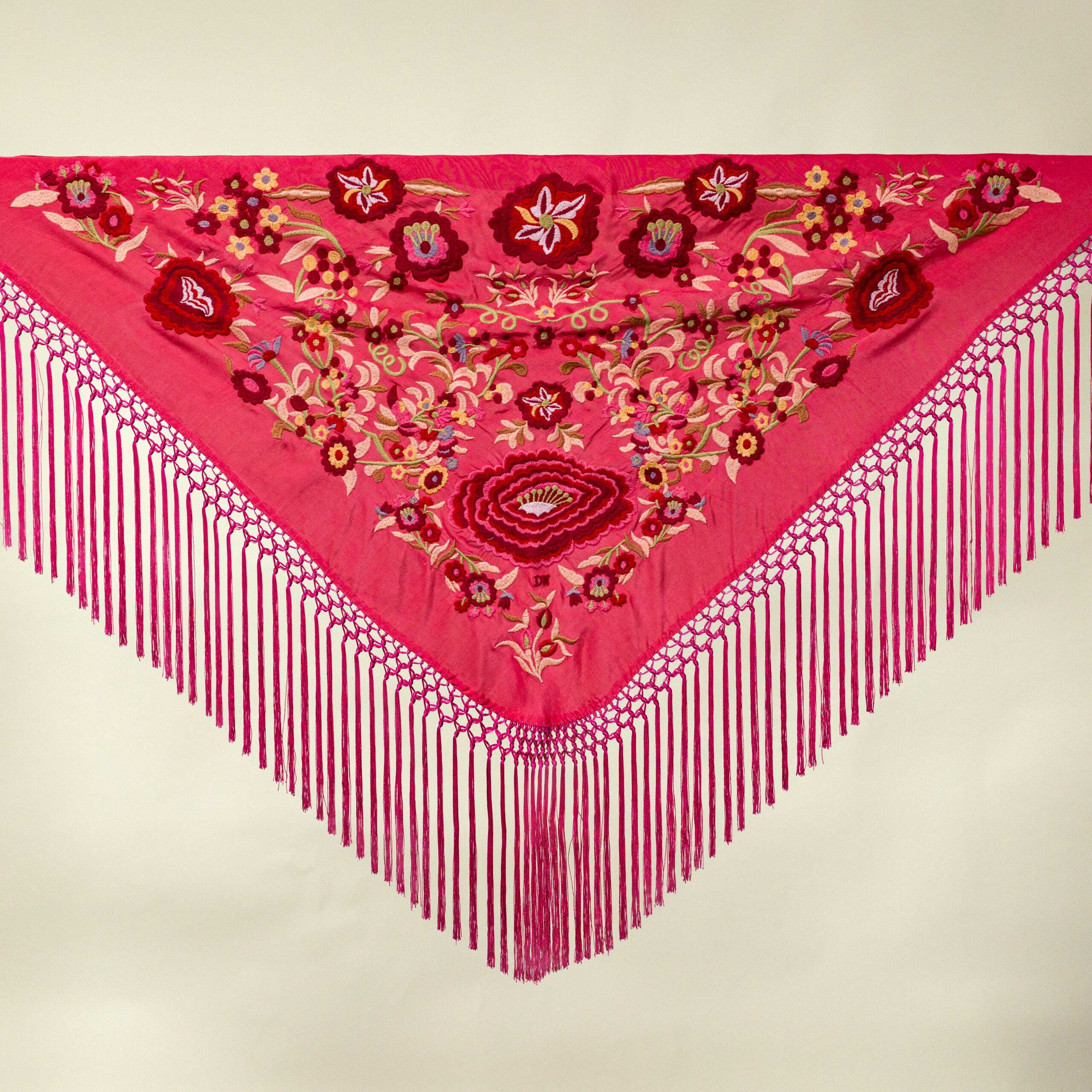 El flecado de nuestros mantones se realiza con gran destreza de forma artesanal. Además, este mantón de flamenca está bordado en varios colores, lo que le proporciona infinitas posibilidades de combinación.