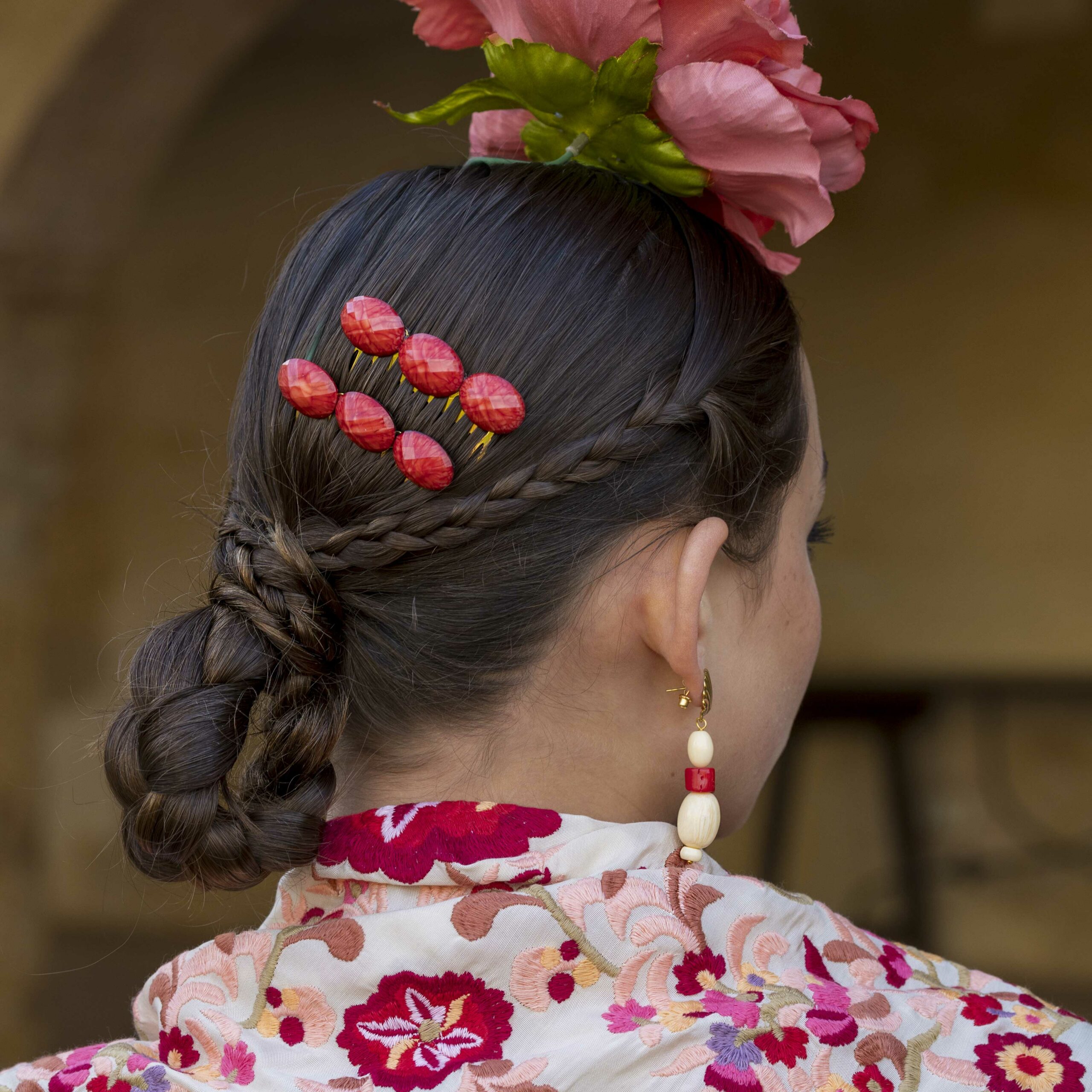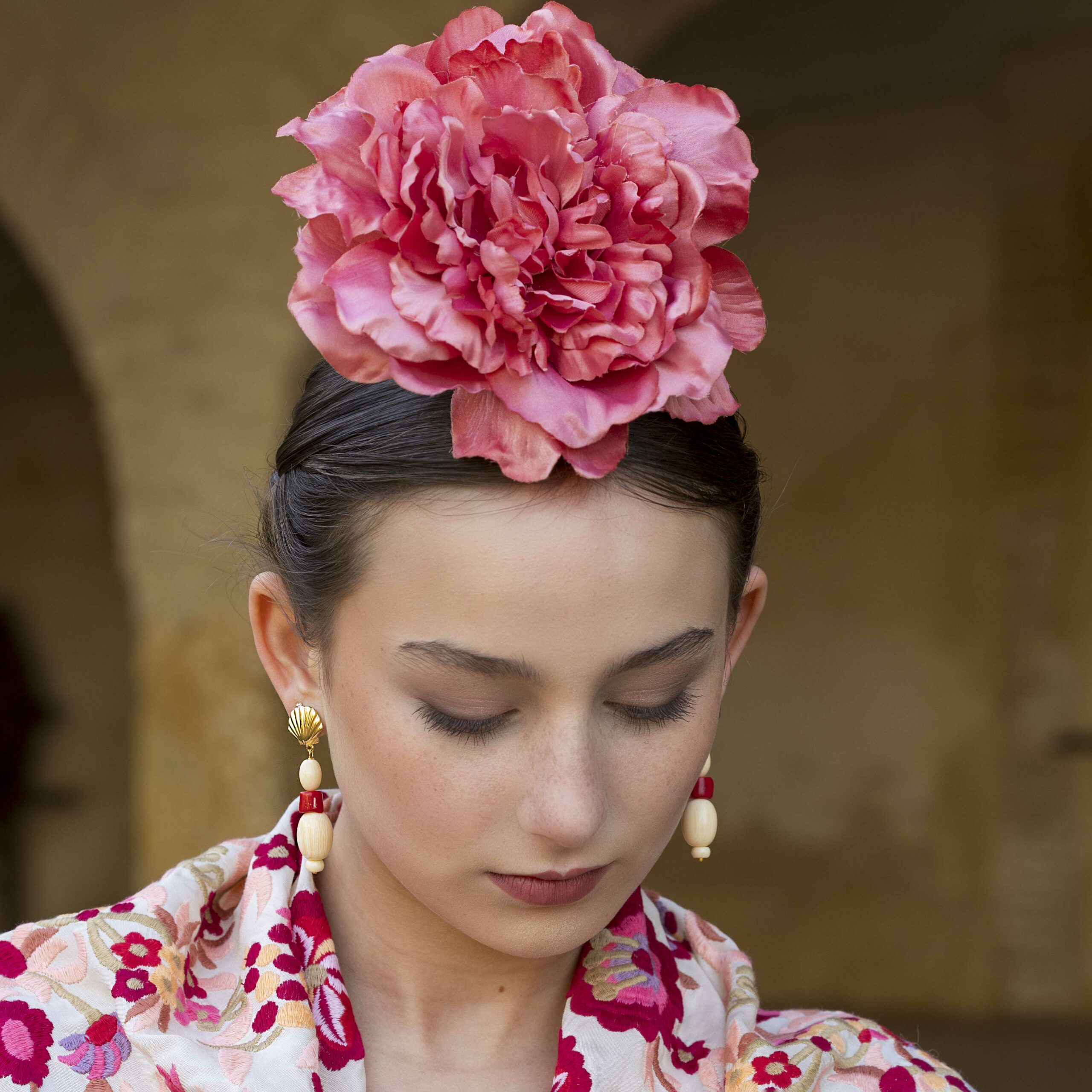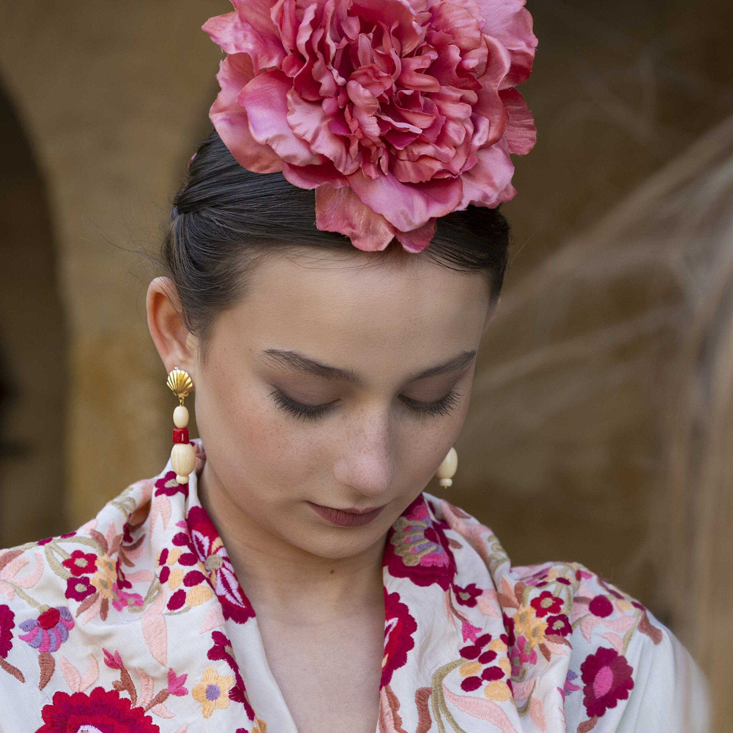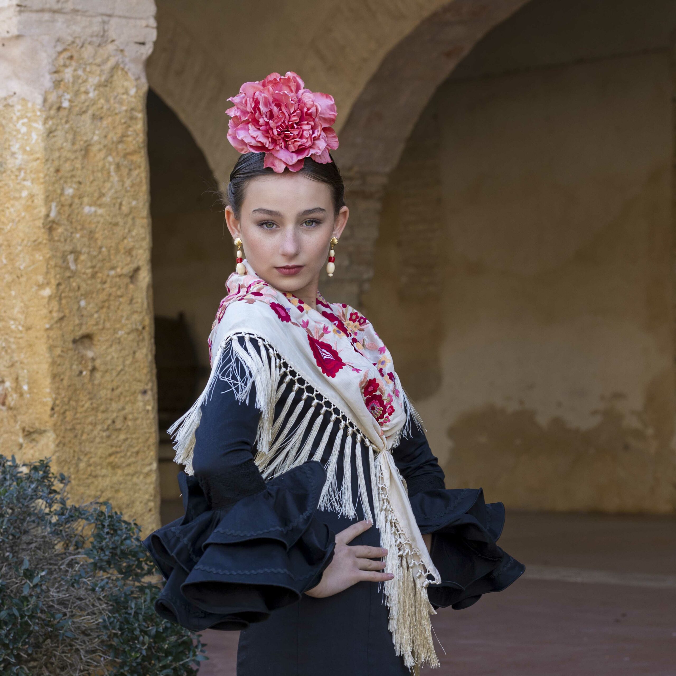 Además, no olvides explorar nuestra colección de complementos, como pendientes y peinecillos, diseñados y fabricados por nuestra marca aquí en el taller. ¡Atrévete a lucir única y elegante en la próxima feria con el Mantoncillo Lola DW en crudo!