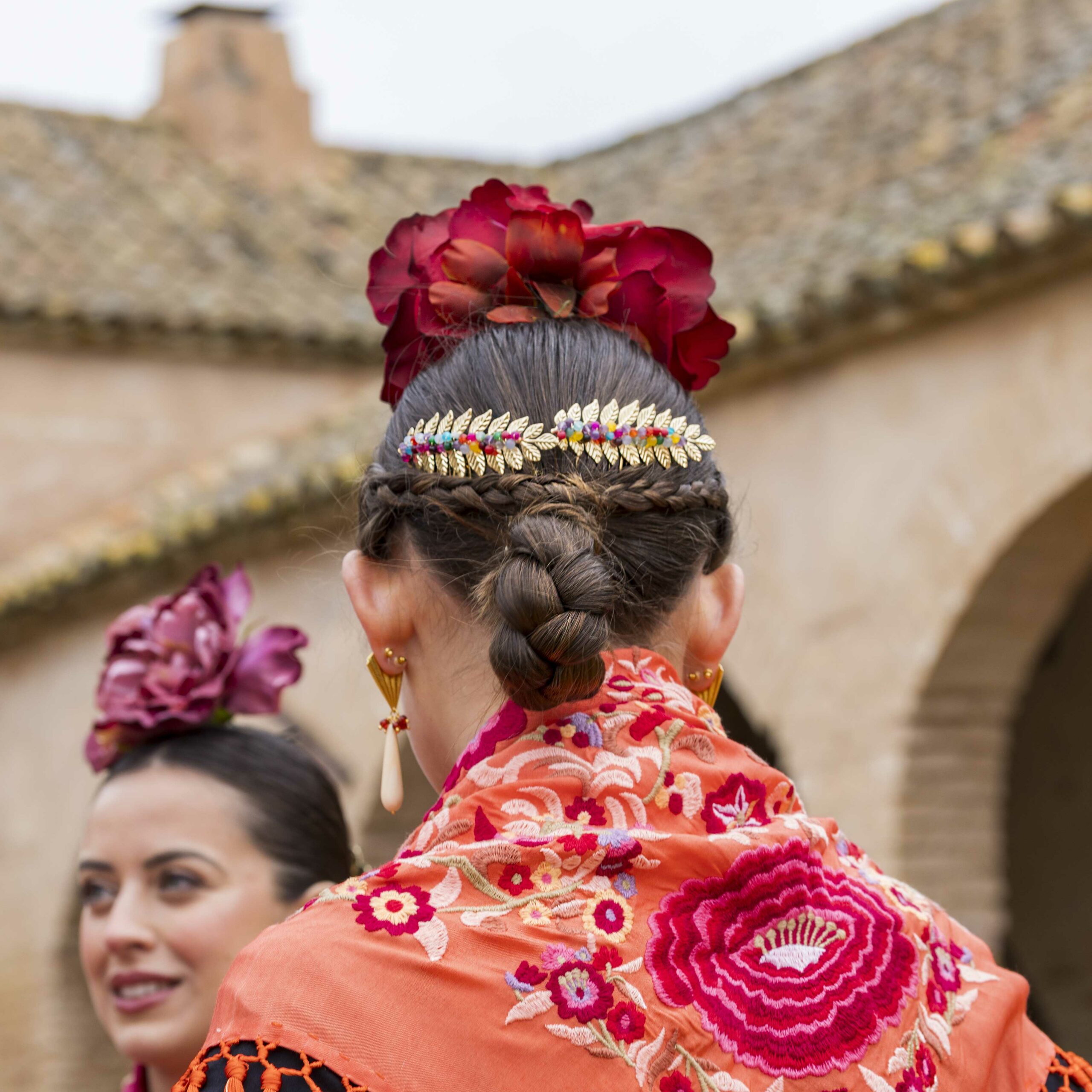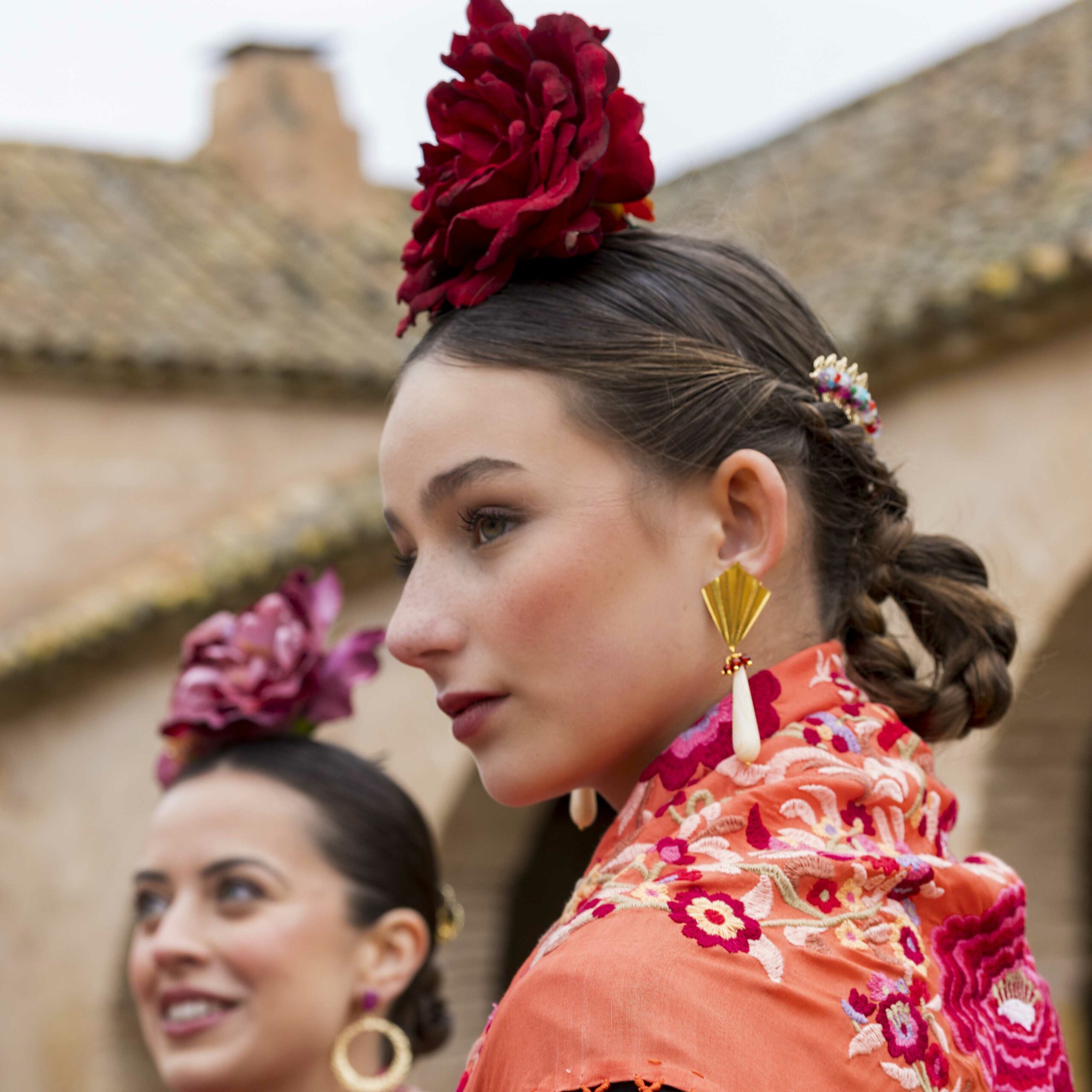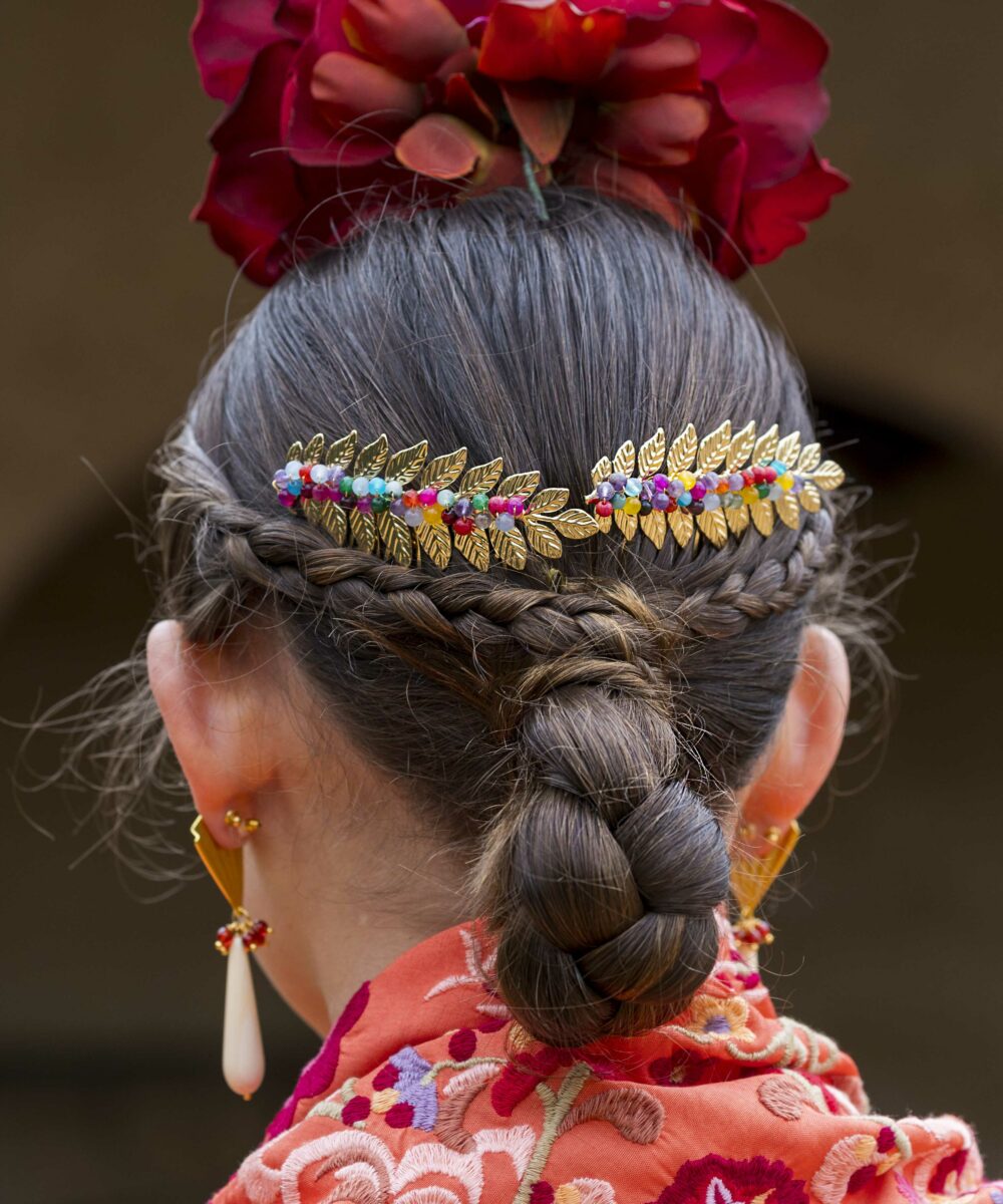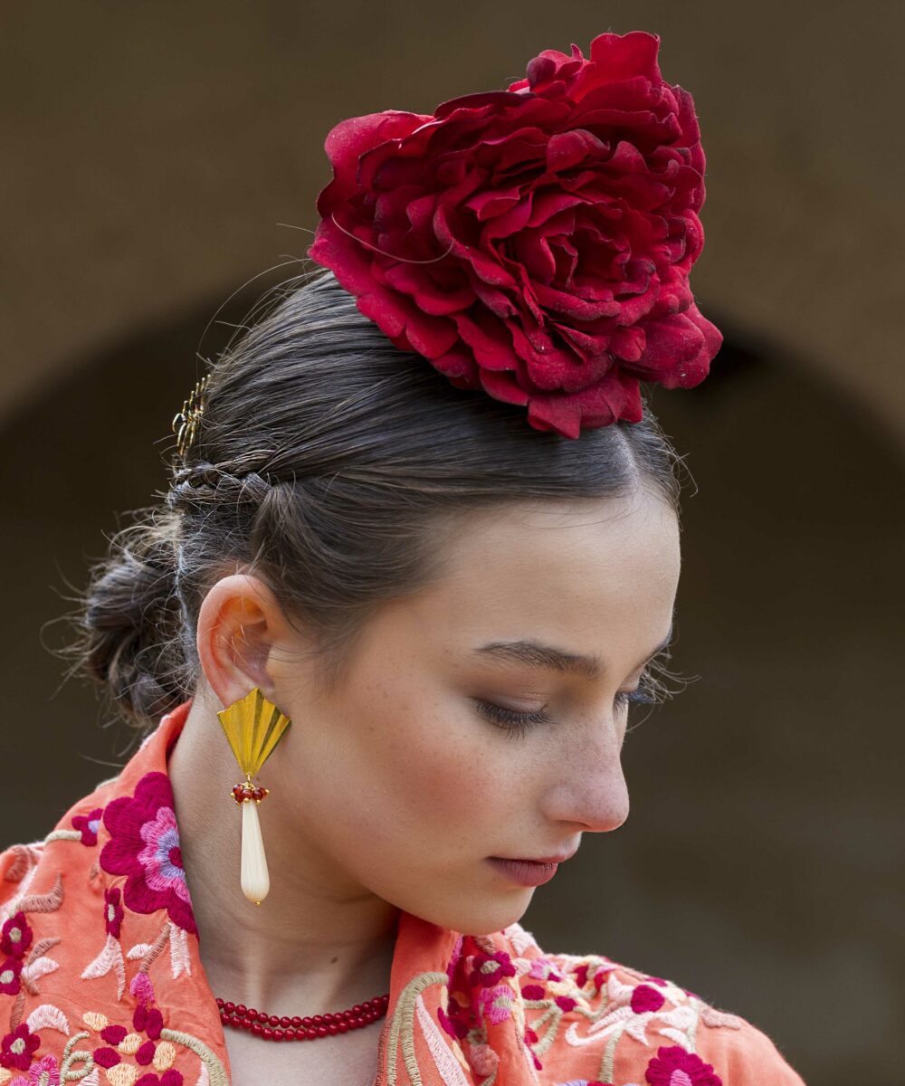 Además, no olvides explorar nuestra colección de complementos, como pendientes y peinecillos, diseñados y fabricados por nuestra marca aquí en el taller. ¡Atrévete a lucir única y elegante en la próxima feria con el Mantoncillo Lola DW en naranja!