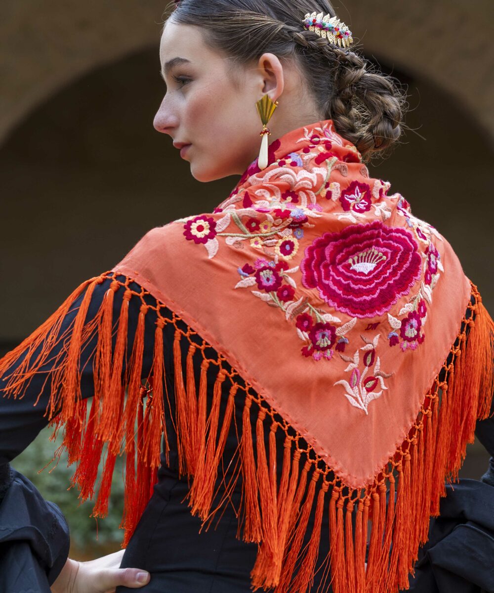 ¡Te presentamos el Mantoncillo Lola DW en color naranja de Darwin Collection! Este cautivador mantón es uno de los modelos exclusivos diseñados para la Colección de Feria 2025 y está disponible en unidades limitadas, lo que lo convierte en una joya única.