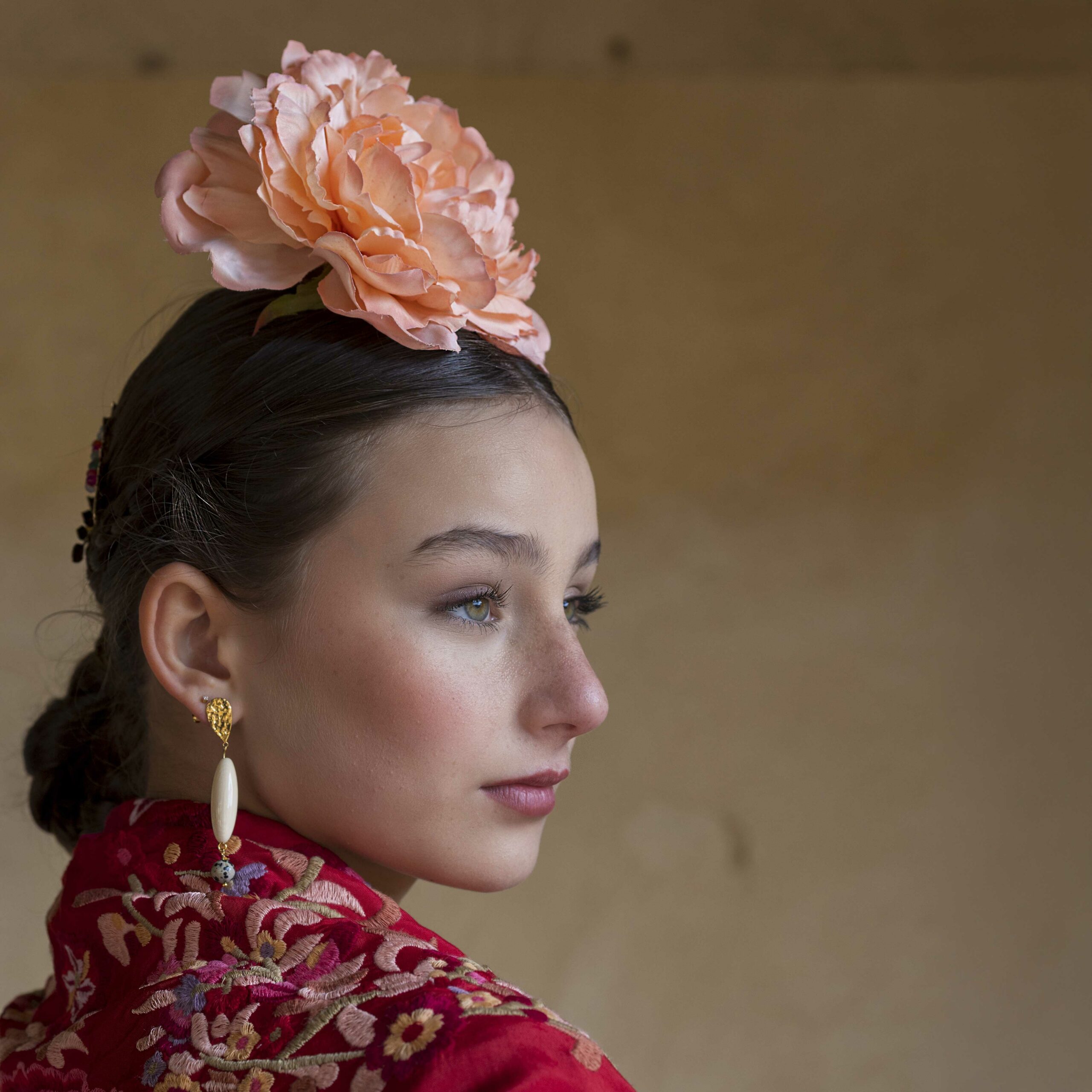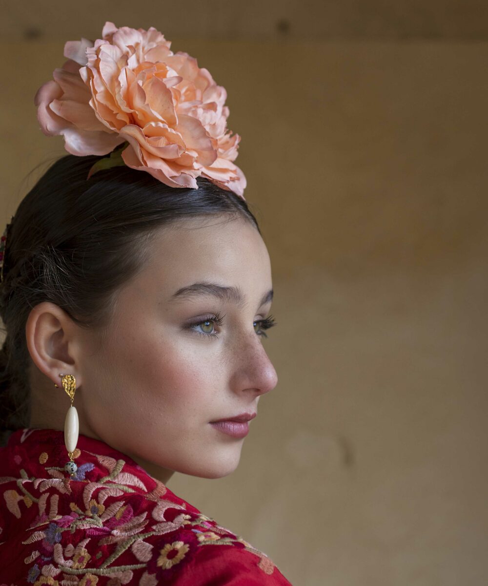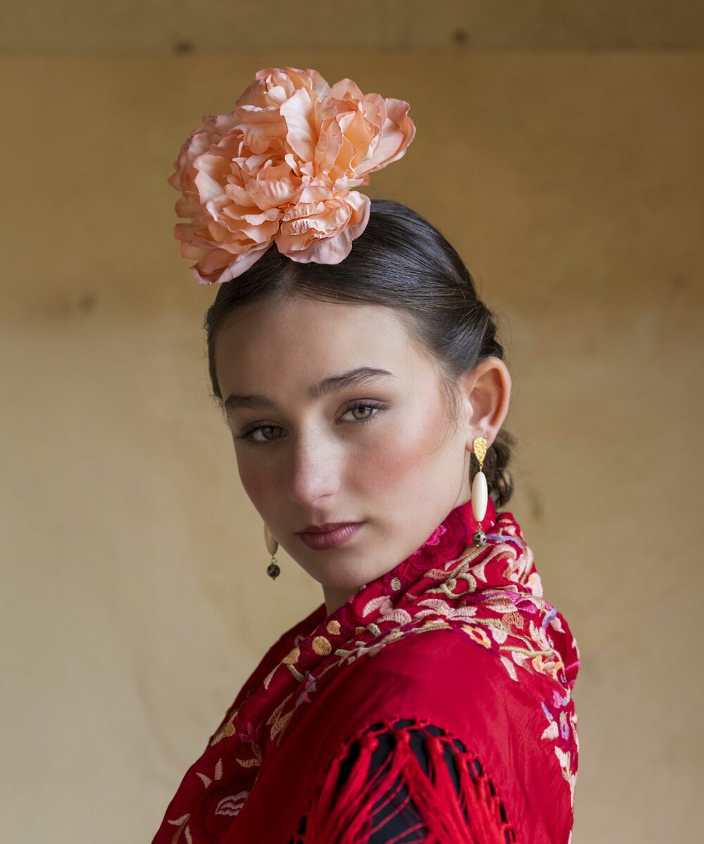 Además, no olvides explorar nuestra colección de complementos, como pendientes y peinecillos, diseñados y fabricados por nuestra marca aquí en el taller. ¡Atrévete a lucir única y elegante en la próxima feria con el Mantoncillo Lola DW en rojo!