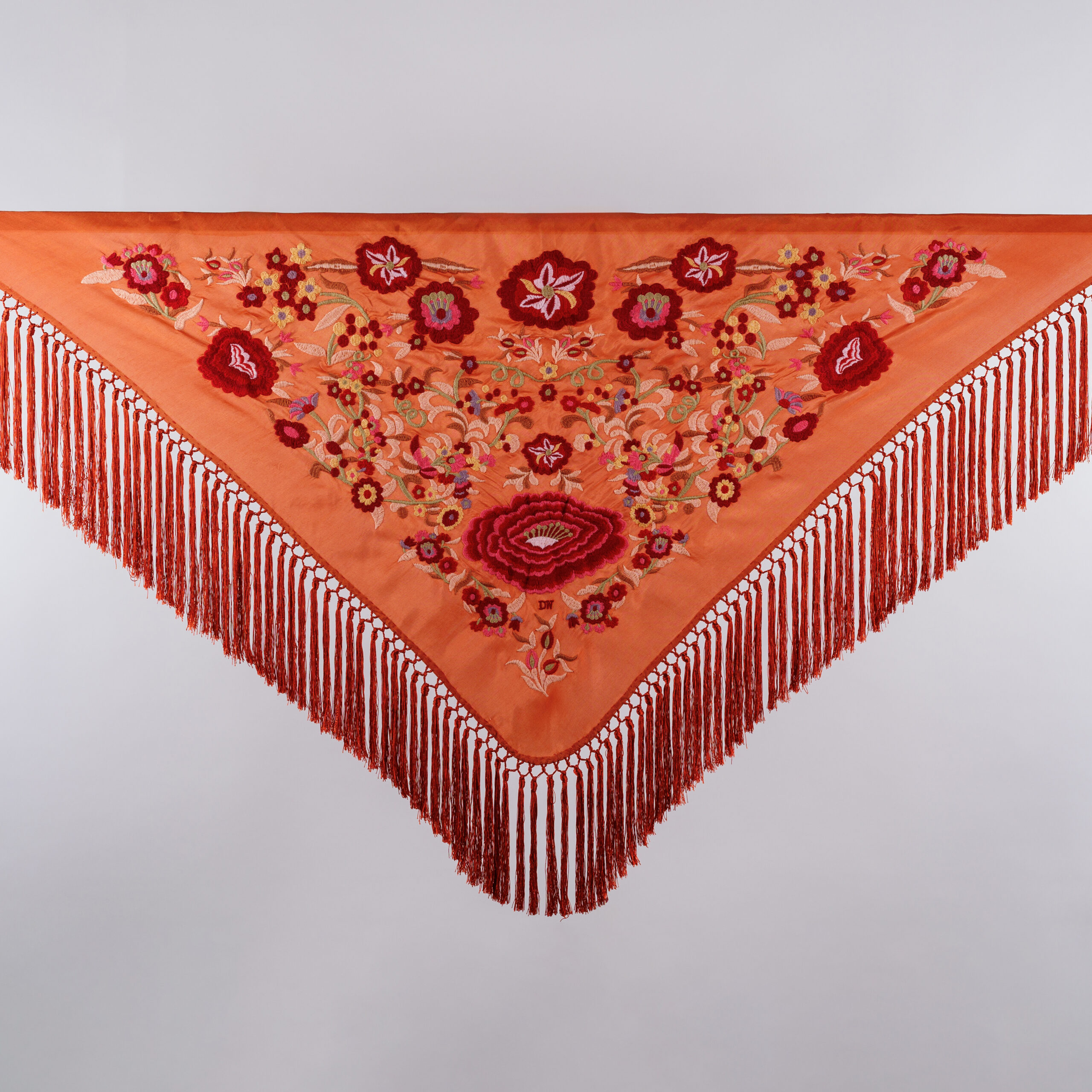 Nuestro mantoncillo está confeccionado en seda de algodón, bordado a máquina y flecado a mano .