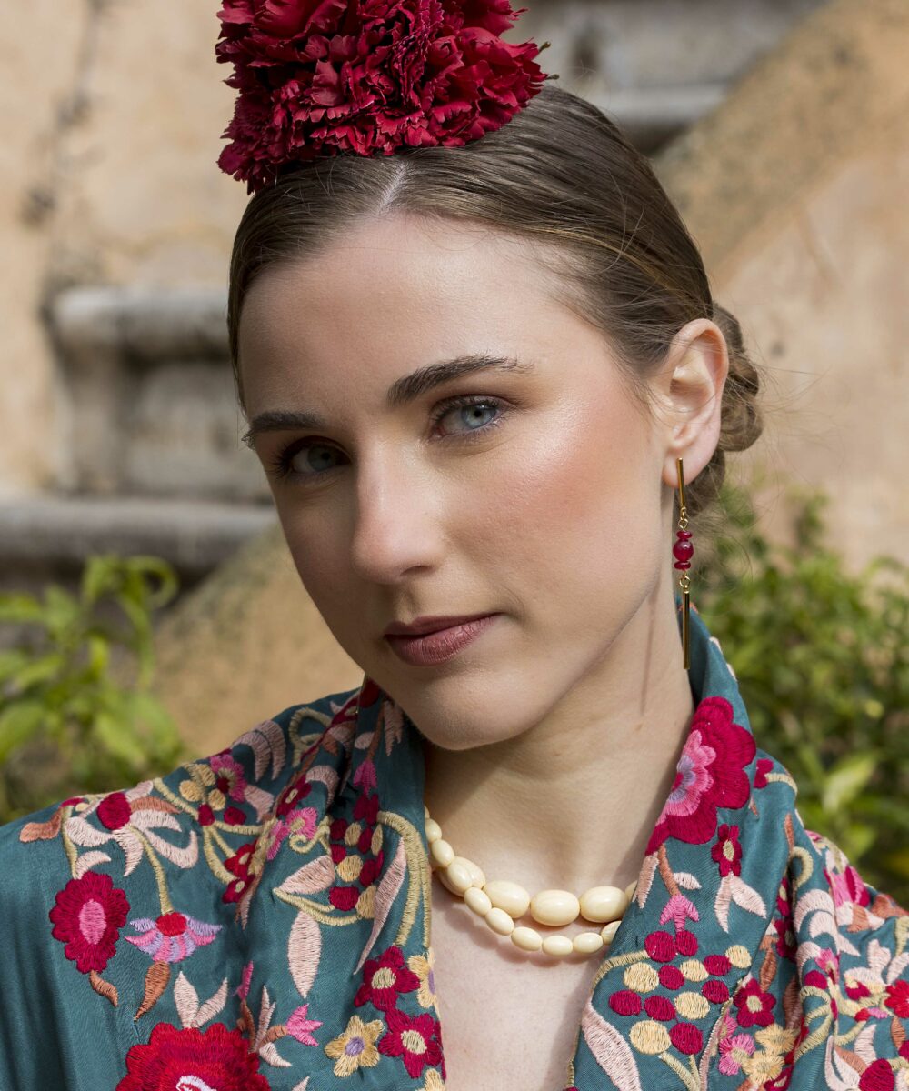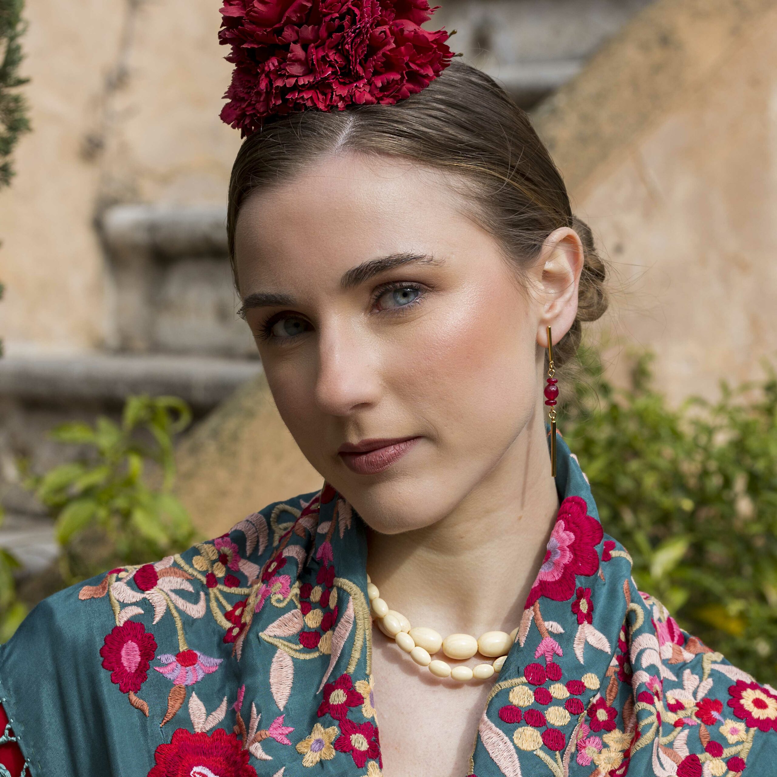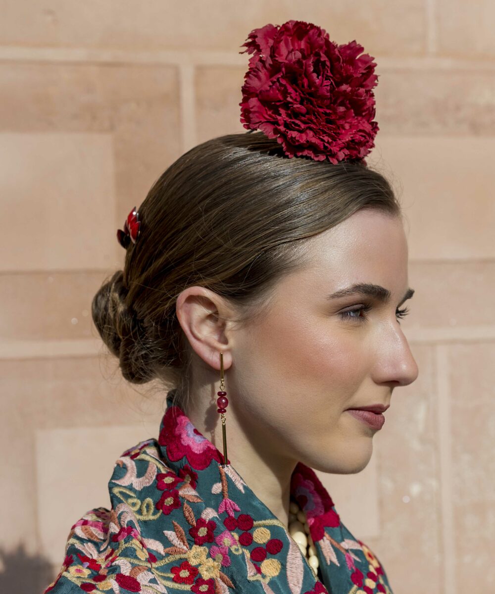 Además, no olvides explorar nuestra colección de complementos, como pendientes y peinecillos, diseñados y fabricados por nuestra marca aquí en el taller. ¡Atrévete a lucir única y elegante en la próxima feria con el Mantoncillo Lola DW en verde petróleo!