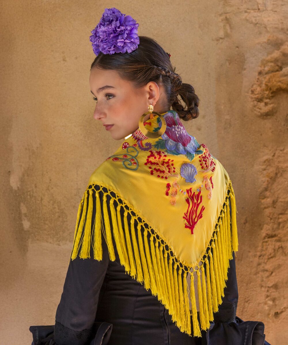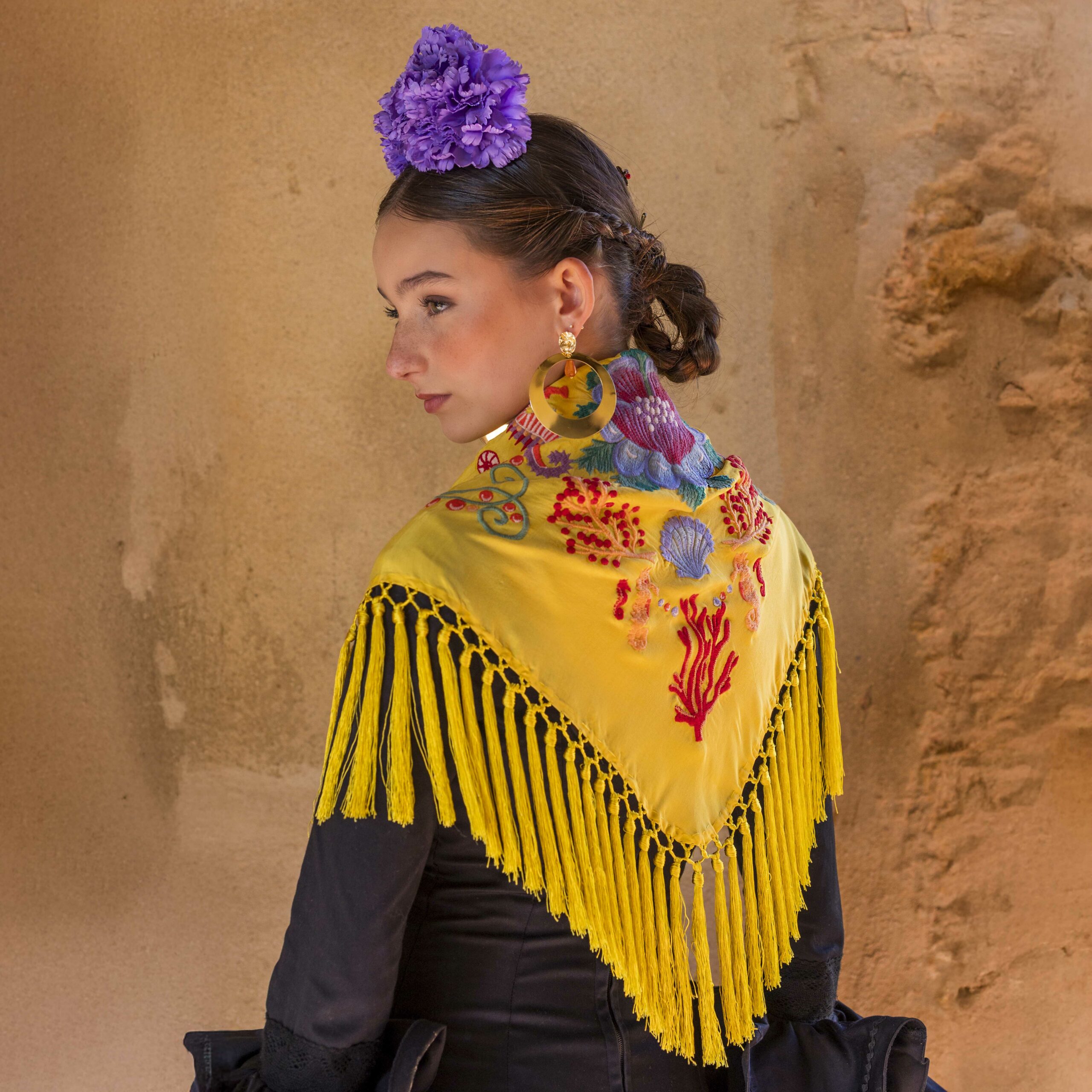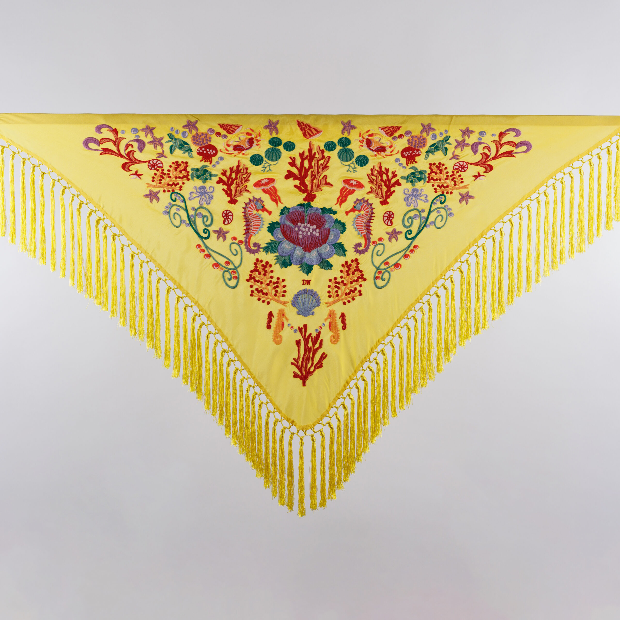 ¡Te presentamos el  Mantoncillo Mar DW amarillo de Darwin Collection! Este encantador mantón es parte de los exclusivos diseños de la Colección de Feria 2025.Disponible  en unidades limitadas, convirtiéndolo en una joya única.