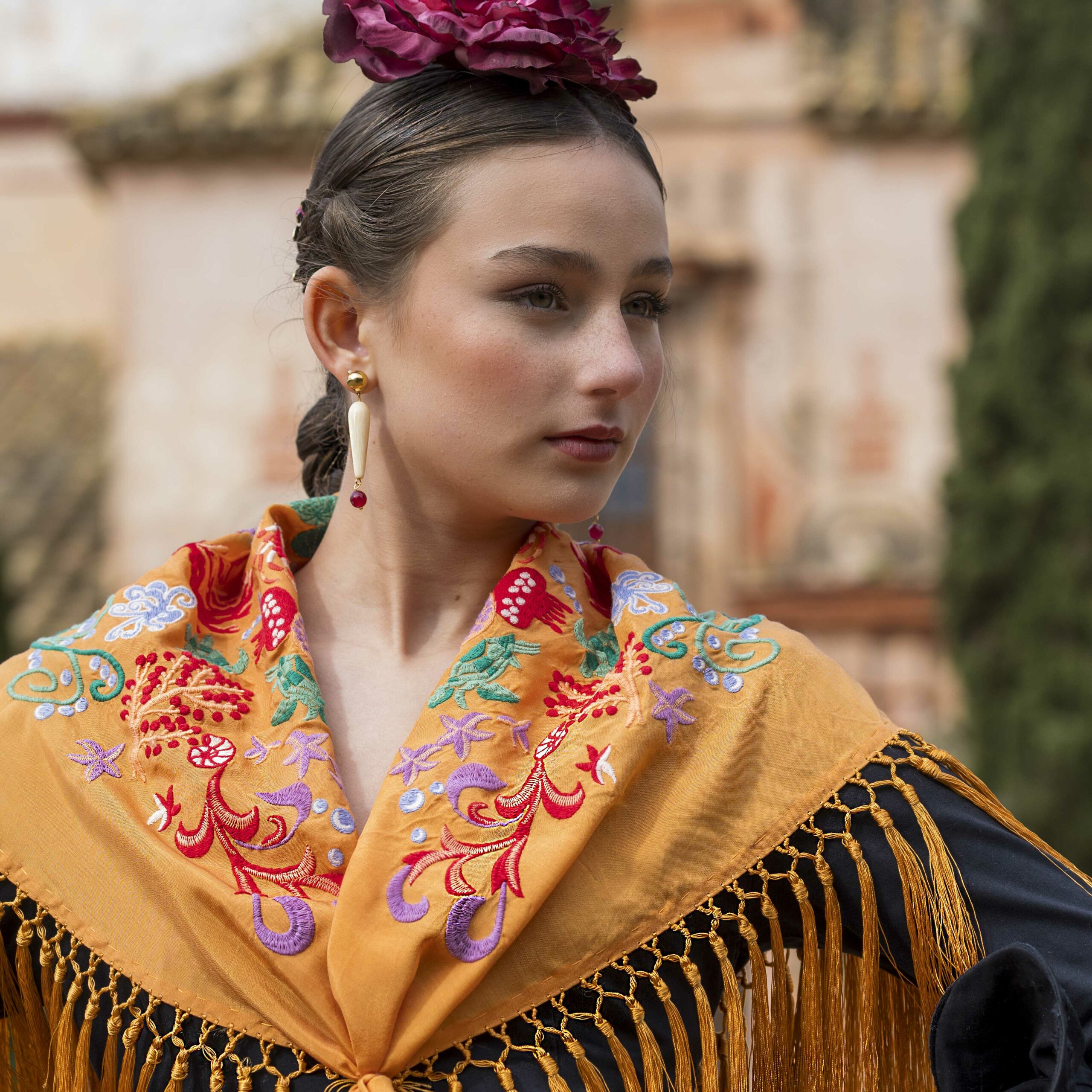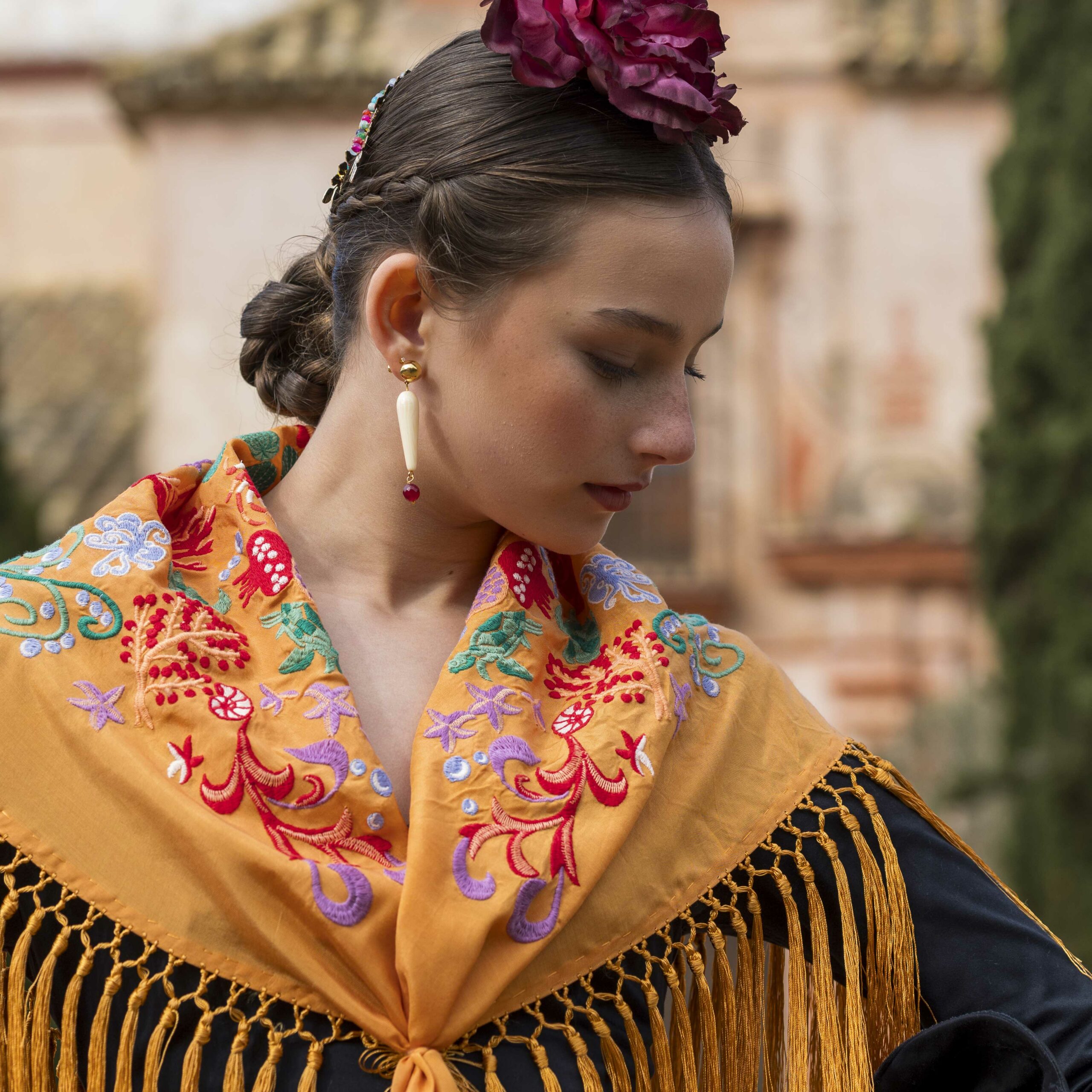 El mantón para traje de flamenca es un imprescindible en la moda andaluza y forma parte esencial del atuendo flamenco de alta calidad. En nuestra región, vestirse adecuadamente para ferias y eventos es una tradición que valoramos profundamente.