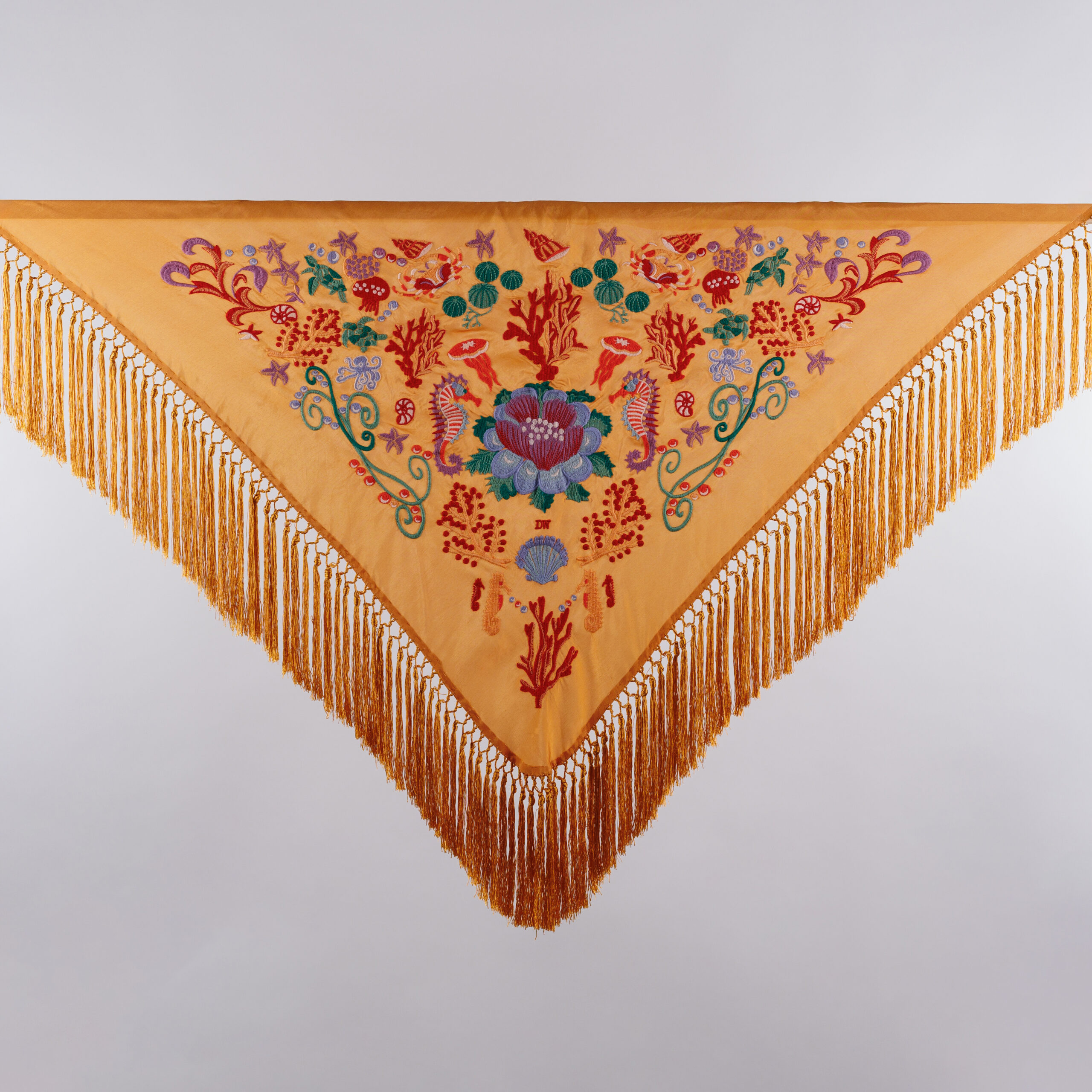 ¡Te presentamos el  Mantoncillo Mar DW mandarina de Darwin Collection! Este encantador mantón es parte de los exclusivos diseños de la Colección de Feria 2024.Disponible  en unidades limitadas, convirtiéndolo en una joya única.